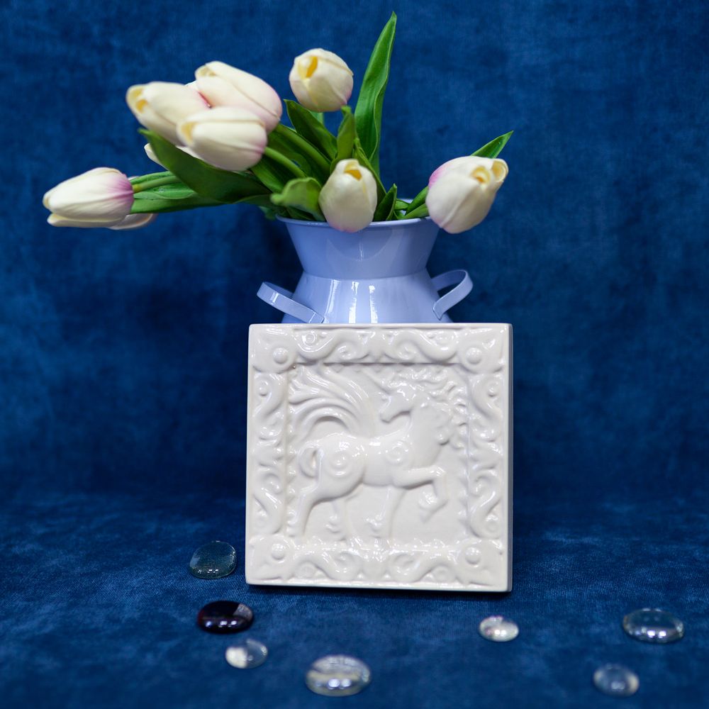 Главная » Каталог изделий » Изразцы » Одноцветные » Белые Одноцветные » Изразец Единорог одноцветный белый