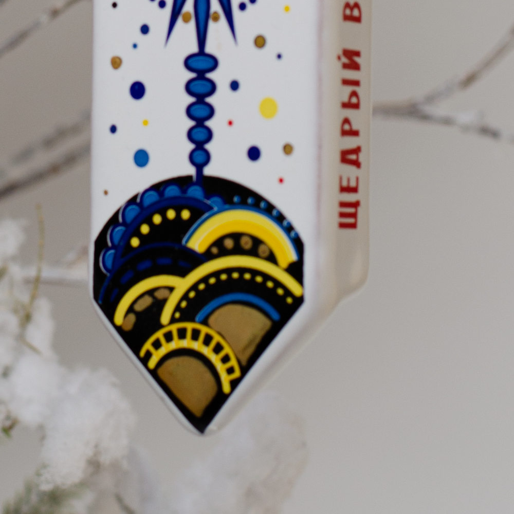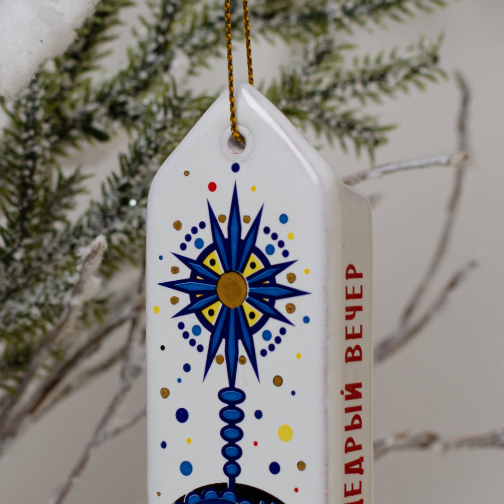 Подвес-конфета “Синяя звезда”- изделие ручной работы, украшенное авторской деколью, входящее в состав коллекции “Колядки”.