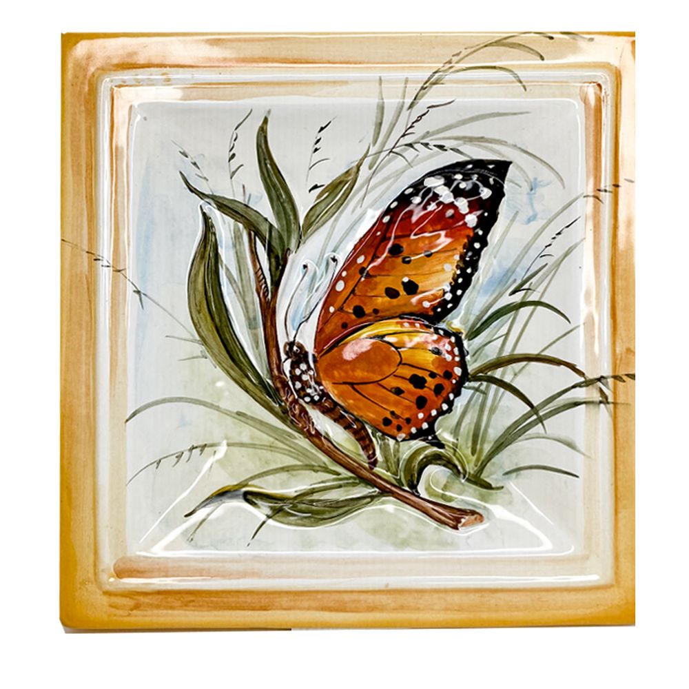Изделие представляет керамический рельефный элемент квадратной формы, расписанный вручную, с объемным изображением яркой бабочки в окружении зелени и нежных цветов. Бабочки — это символы бессмертия души, ее возрождения и перерождения. Данное изделие может быть использовано как самостоятельный настенный декор, и как изразец. Самое подходящее место для декора с бабочками — это спальня и детская комната, но можно ими украсить и другие помещения. Большой плюс подобного декора в том, что он не потребует от вас много затрат: ни временных, ни финансовых. Зато результат будет потрясающим, вы сразу увидите, как преобразится ваш интерьер и заиграет летними красками! Декор также будет прекрасным подарком родным, близким, коллегам по работе.