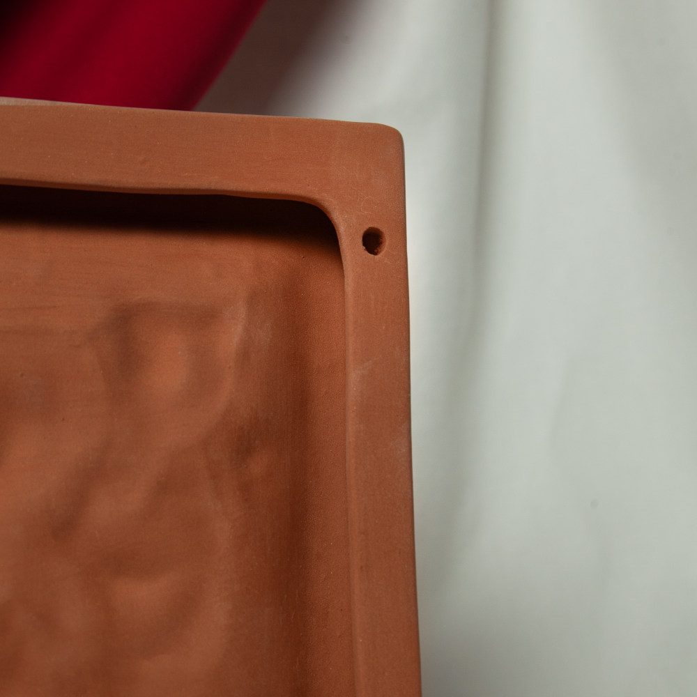 Изделие выполнено в технике майолика, материалы: красная глина, белая глазурь, высокотемпературный обжиг, художественная роспись.
