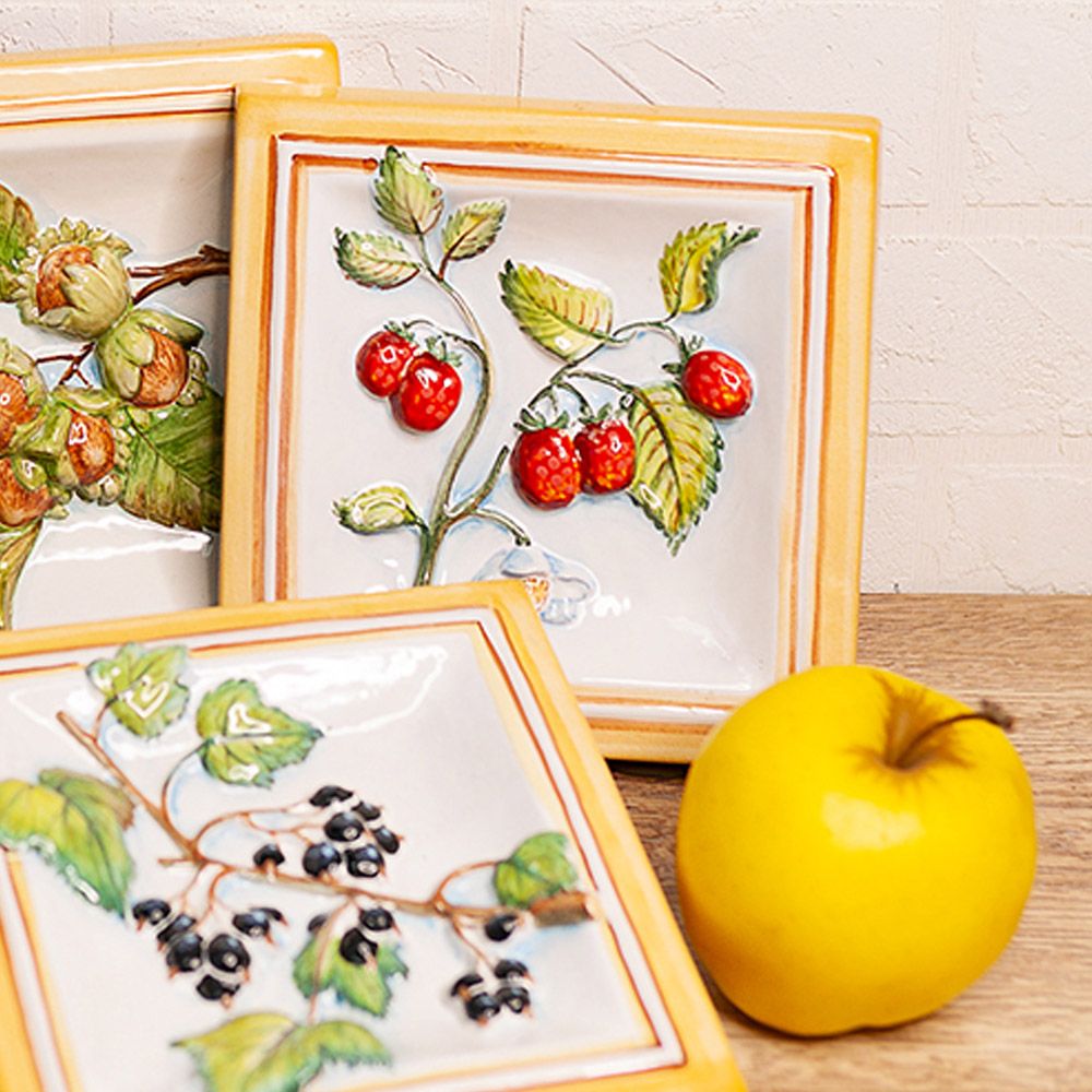 Изделие представляет керамический рельефный элемент квадратной формы, расписанный вручную, с объемным изображением ветки малины в центре. Малина – это ягода оптимистов. А в христианстве символизирует доброту. В магии малина – символ сладкой жизни, полной достатка и любви. Данное изделие может быть использовано как самостоятельный настенный декор, и как изразец. Декор смотрится ярко и эффектно, может использоваться в местах, где фантазия архитектора или дизайнера по интерьеру не ограничивается типовым решением, он позволяет сделать акцент, привлекающий взгляд, внести завораживающую изюминку в интерьер. Декор также будет прекрасным подарком родным, близким, коллегам по работе.