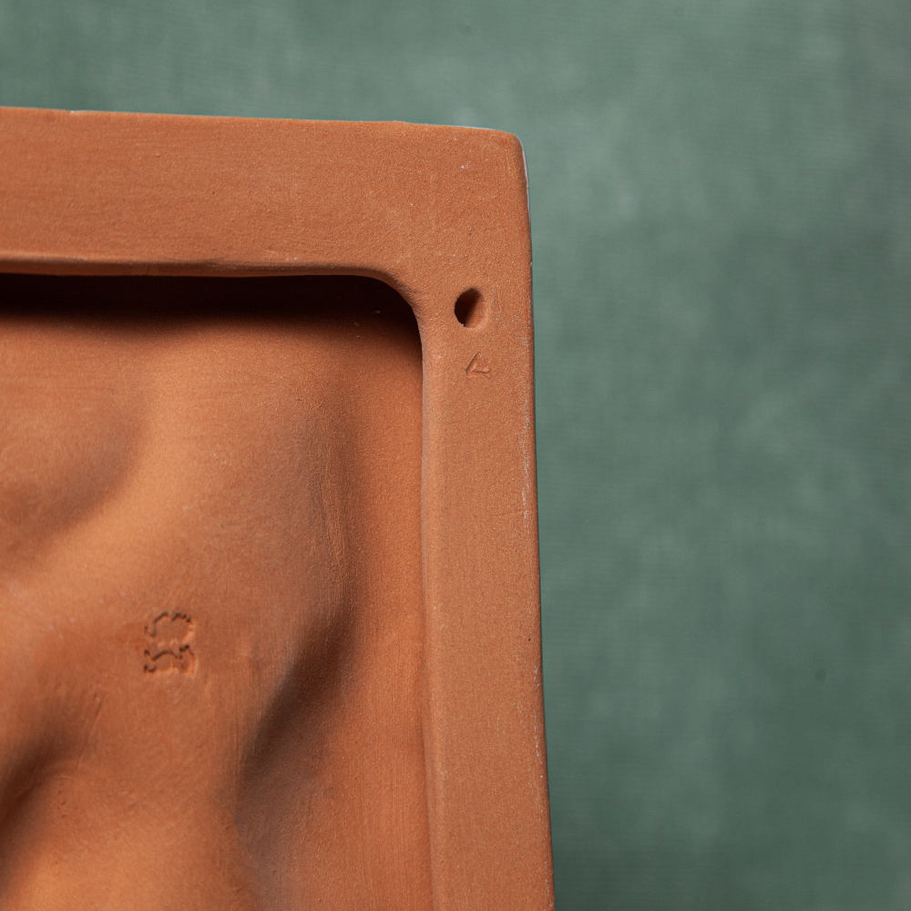 Изделие выполнено в технике майолика, материалы: красная глина, белая глазурь, высокотемпературный обжиг, художественная роспись.