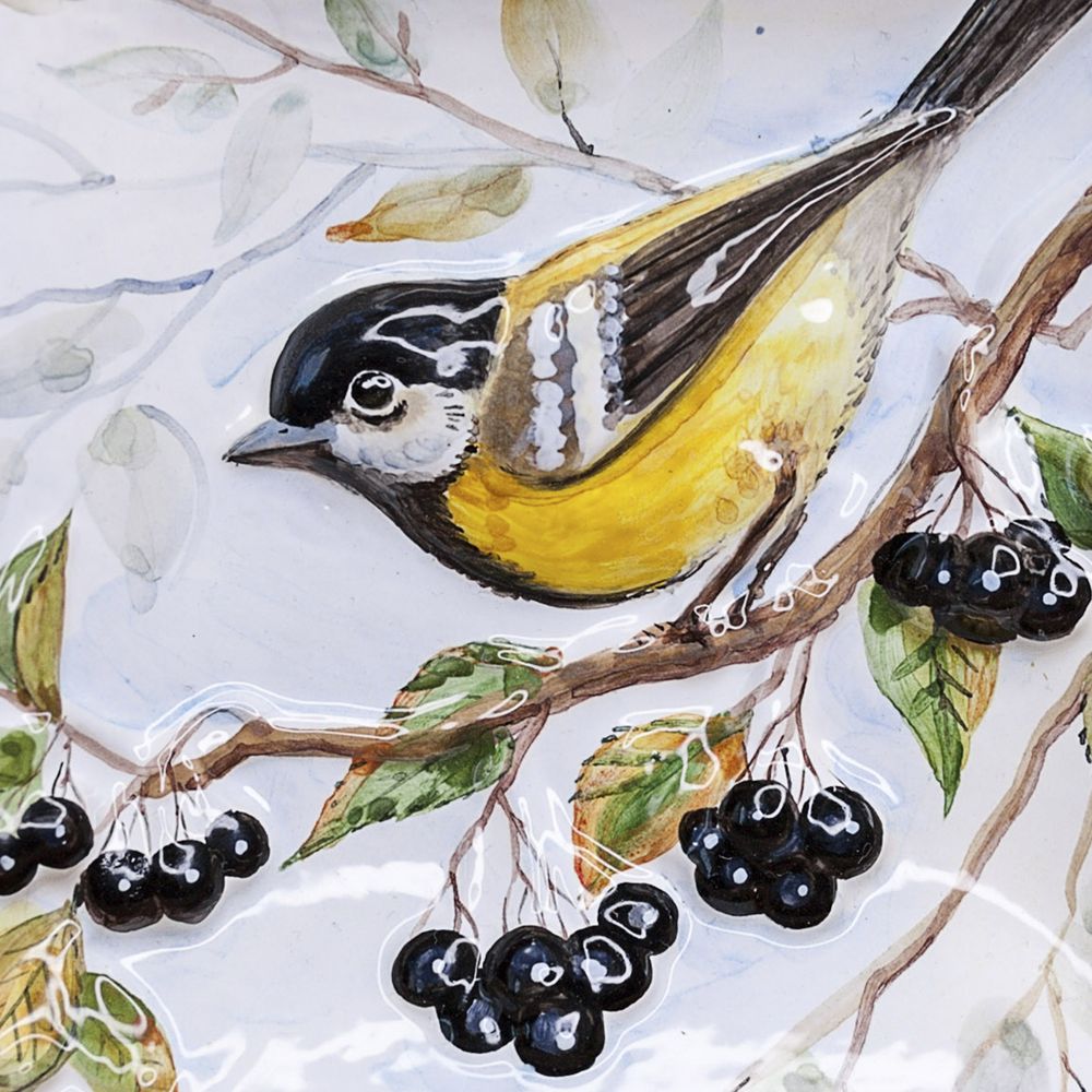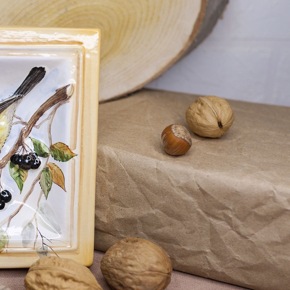 Изделие представляет керамический рельефный элемент квадратной формы, расписанный вручную, с объемным изображением милой птички-невелички – синички, готовой вспорхнуть с ветки черноплодной рябины. Синица – это символ добра, хороших вестей, радости и оптимизма. Она олицетворяет простые взгляды на жизнь и повседневные заботы. Синица напоминает нам о том, что следует находиться в моменте «здесь и сейчас», перестать копаться в прошлом и не думать излишне напряженно о будущем. Ведь только здесь и сейчас возможна настоящая и радостная жизнь. Данное изделие может быть использовано как самостоятельный настенный декор, и как изразец. Декор смотрится ярко и эффектно, может использоваться в местах, где фантазия архитектора или дизайнера по интерьеру не ограничивается типовым решением, он позволяет сделать акцент, привлекающий взгляд, внести завораживающую изюминку в интерьер. Декор также будет прекрасным подарком родным, близким, коллегам по работе.