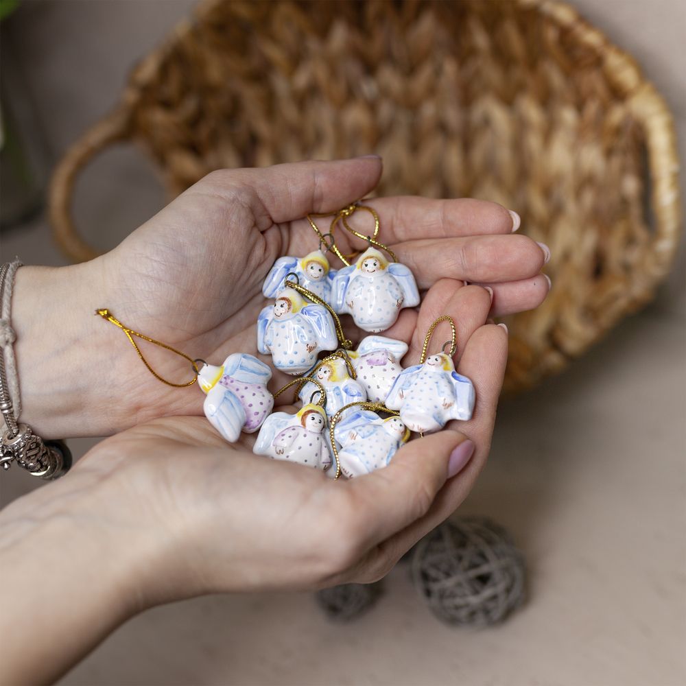 Мини-подвес “”Ангелочек”” изготовлен в технике майолика, украшен ручной художественной росписью и входит в коллекцию украшений “”Для маленькой ёлочки””. Ангелочек считается символом защиты, надежды и доброты. Его присутствие на елочке или в качестве подарка близкому человеку – пожелание безопасности и удачи. Милые миниатюрные ангелочки приносят радость и свет в дом, создавая атмосферу мира и любви. Крылатый хранитель, благодаря своим компактным размерам, может стать не только украшением в интерьере, но и модным аксессуаром – на булавке, как кулон, брелок или украшение для кошелька. Этот уникальный подвес станет необычным дополнением к вашей коллекции украшений и призывом к духовной гармонии и защите.”