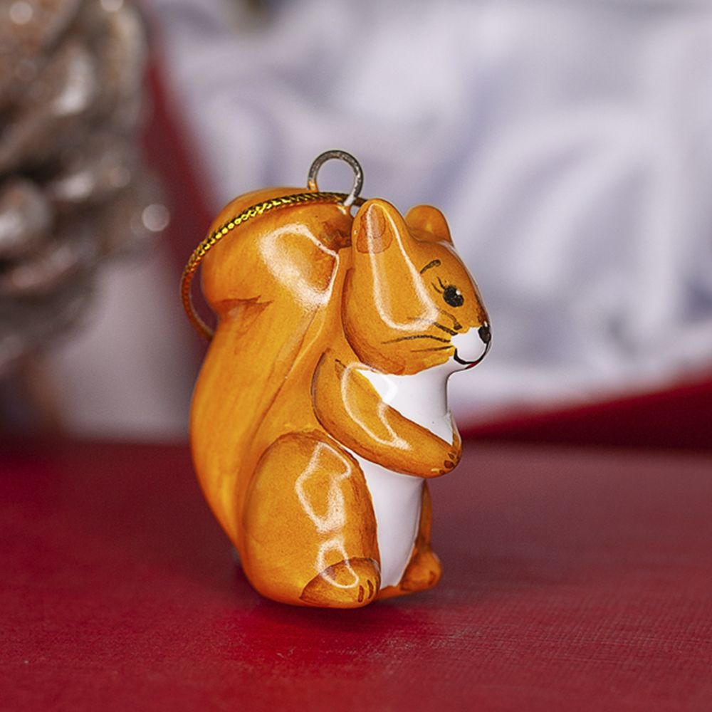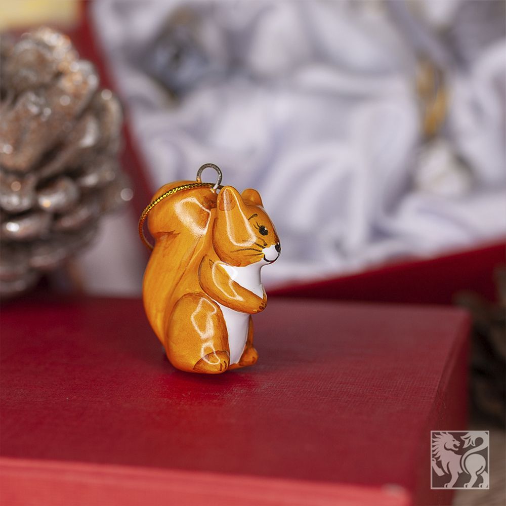 Изделие ручной работы входит в коллекцию подвесов для маленькой елочки и представляет собой малышку белочку с пушистым длинным хвостом, ушками и выразительными глазками. Это изделие ручной работы никого не оставит равнодушным. Пушкинская белочка — заботливая хозяйка, она постоянно трудится. В старых мультфильмах белочка всегда старается быть впереди, ее характеризует энергичность и жизнерадостность. Узнаваемый образ рыженькой красавицы наши художники изобразили для вас яркими оттенками золотистого, огненного оранжевого, легкими мазками кисти оттенив хвостик и лапки. Елочная игрушка Белочка станет желанным подарком на Новый год, а также на любой другой праздник. Соберите всю коллекцию мини-украшений, чтобы малышка-елочка была самой красивой и нарядной.