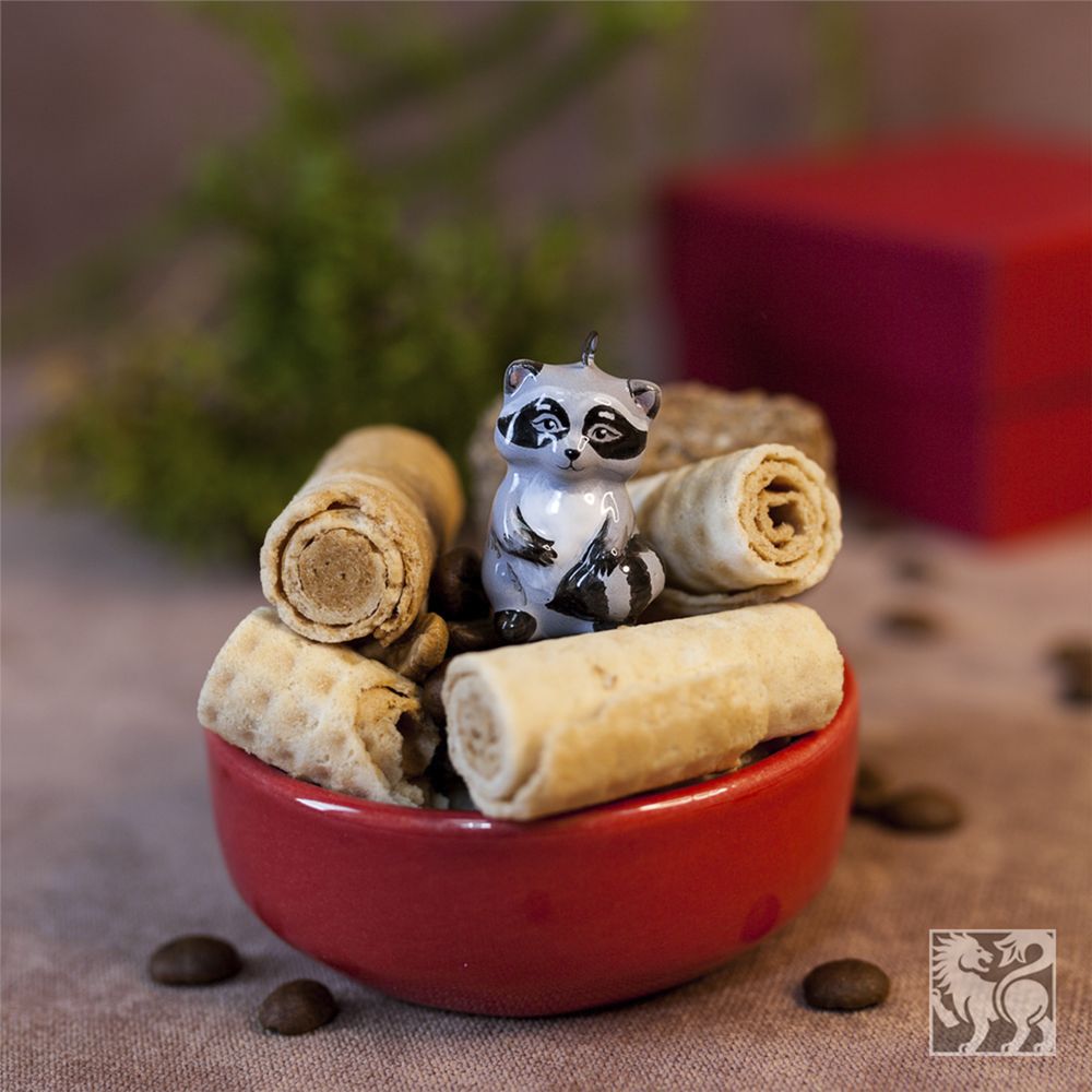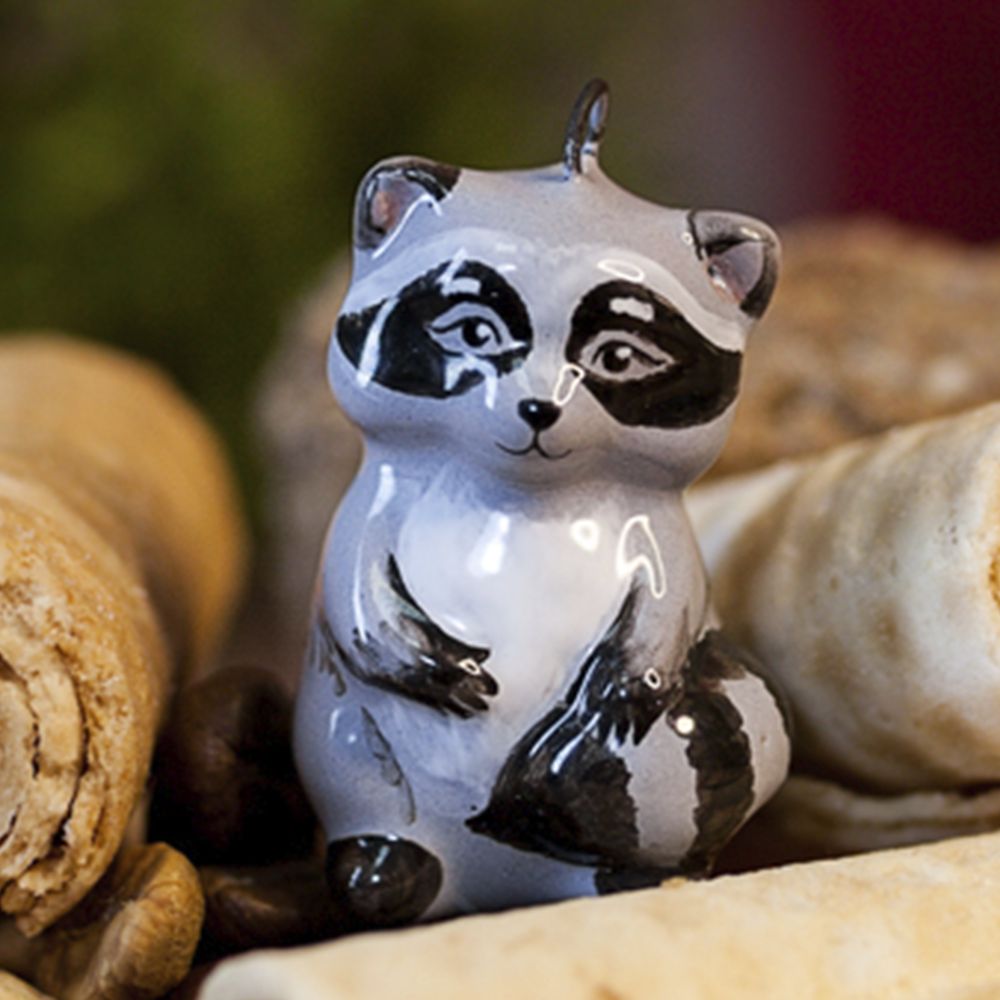Подвес “”Енот”” выполнен в технике майолика, украшен ручной художественной росписью и входит в коллекцию украшений “”Для маленькой ёлочки””. Енот хитрый и ловкий зверек, его милый образ добавит радости и уюта в ваш дом. Подвес станет прекрасным украшением для вашей елочки, а также оригинальным подарком для друзей и близких по любому поводу. Соберите всю коллекцию мини-украшений, чтобы малышка-елочка была самой красивой и нарядной.”