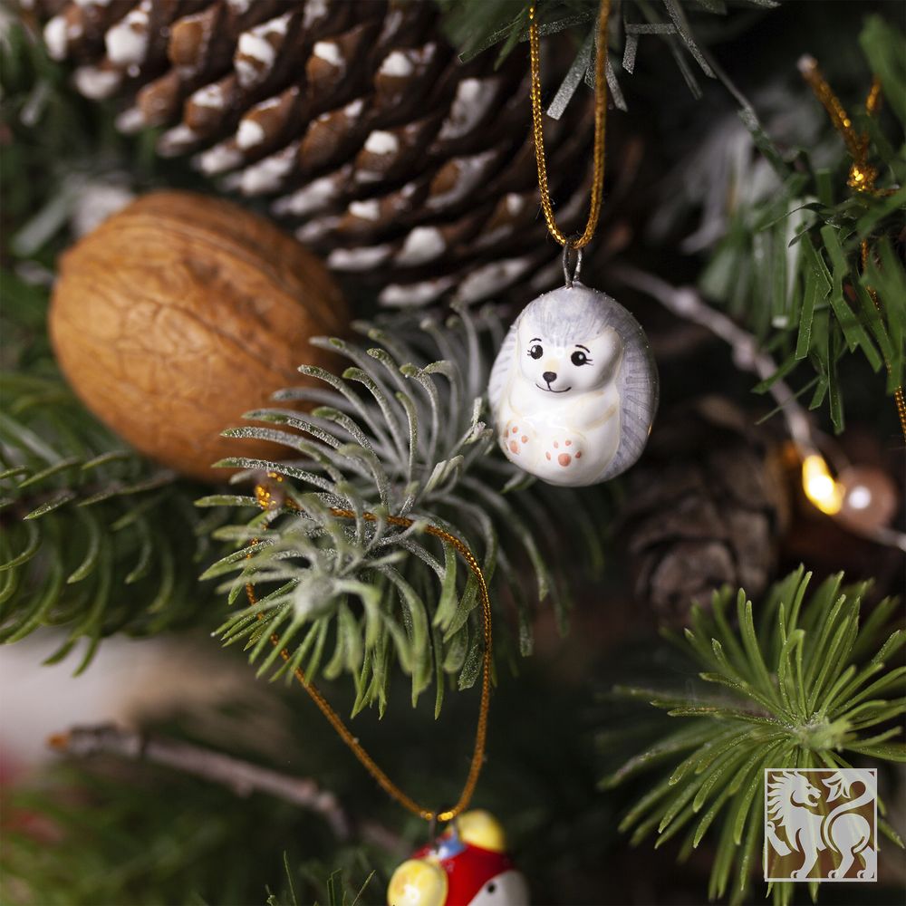 Подвес “Ежик” выполнен в технике майолика, украшен ручной художественной росписью и входит в коллекцию украшений “Для маленькой ёлочки”. Милый маленький лесной зверек, ассоциируется с лесом и детскими сказками. Этот подвес станет уютным украшением для маленькой ёлочки и оригинальным подарком для друзей и близких. Соберите всю коллекцию мини-украшений, чтобы малышка-елочка была самой красивой.