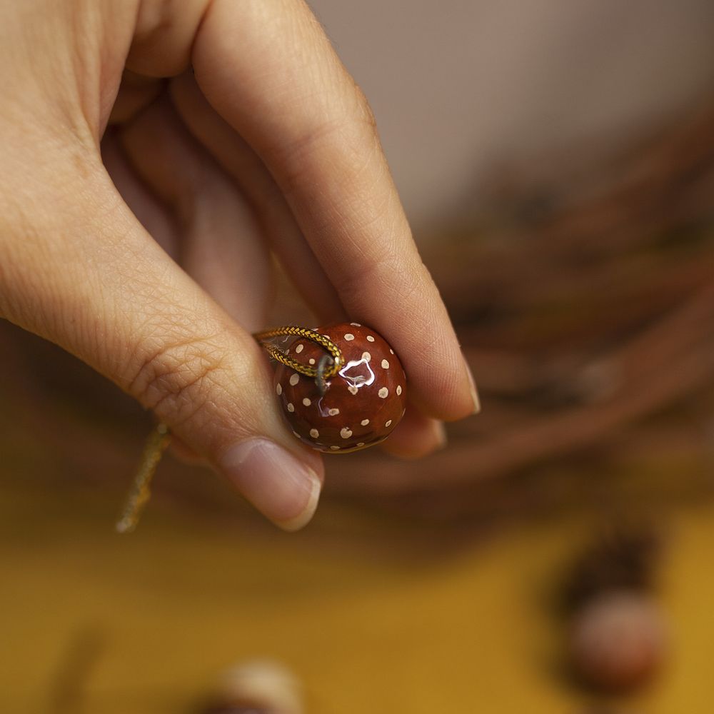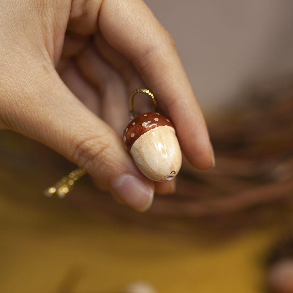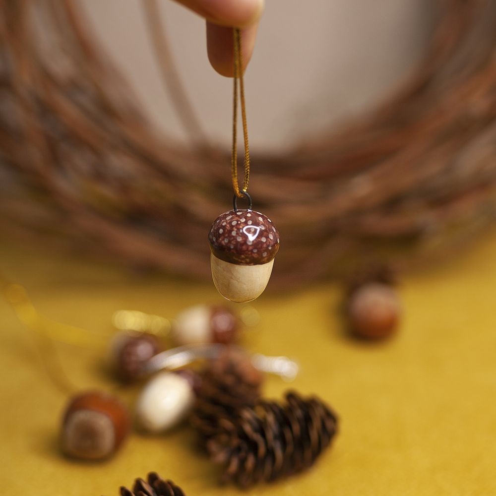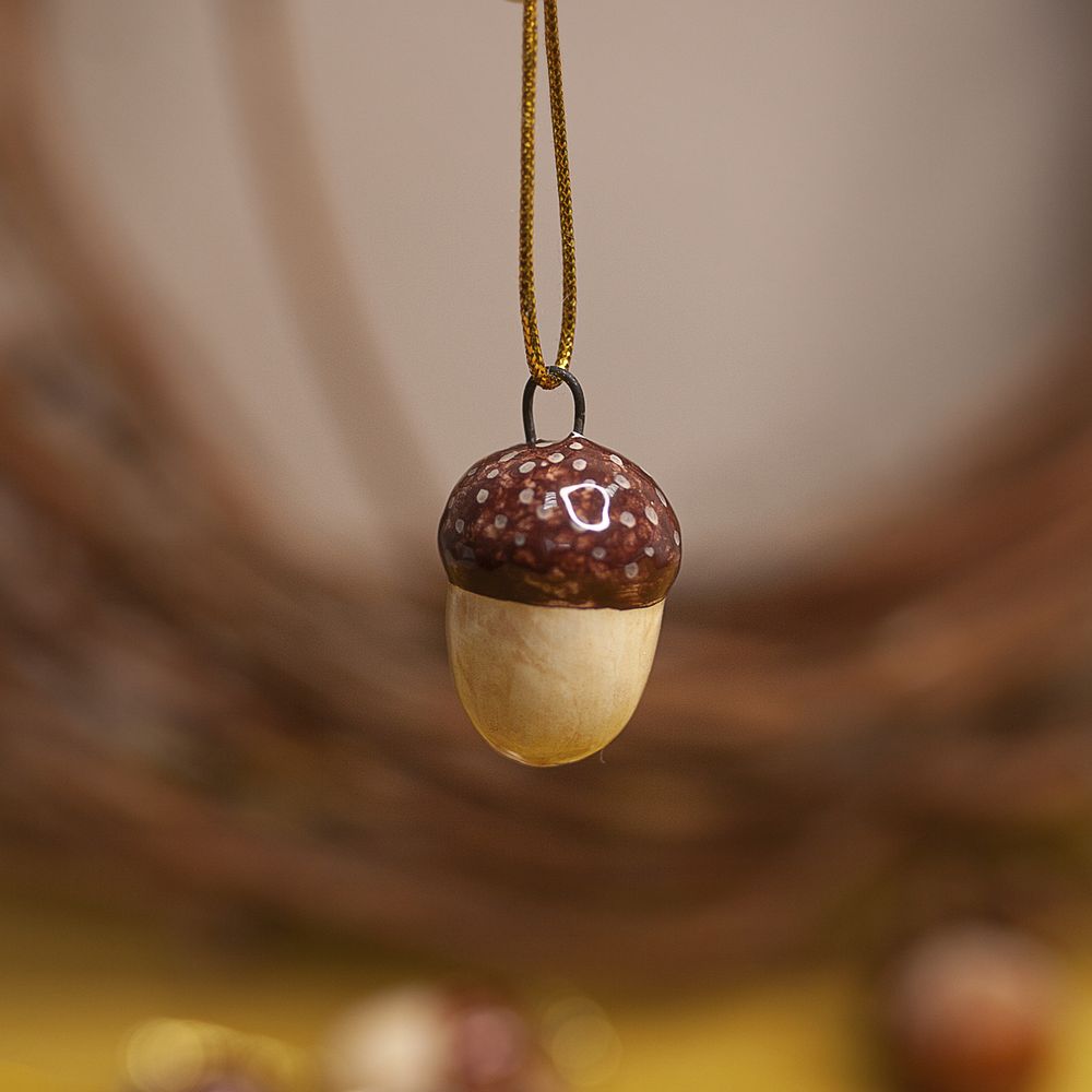 Подвес “Желудь” выполнен в технике майолика, украшен ручной художественной росписью и входит в коллекцию подвесов “Для маленькой ёлочки”. Издревле желудь считался символом плодородия и духовной энергии, а венок из дубовых листьев в Древнем Риме, считался высочайшей наградой. Маленький подвес станет замечательным украшением для новогодней елочки, и также будет прекрасным и символичным подарком для близких. Соберите всю коллекцию мини-украшений, чтобы малышка-елочка была самой красивой и нарядной.