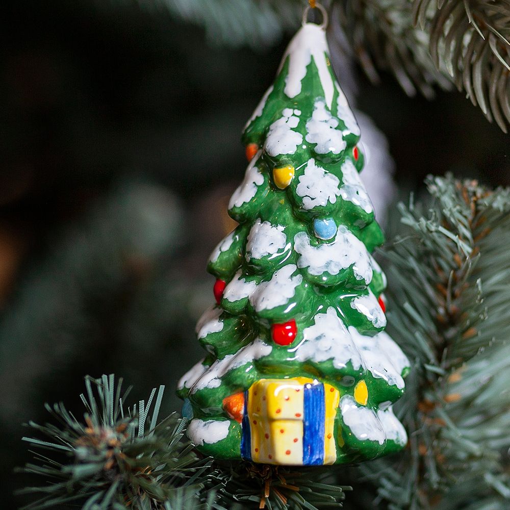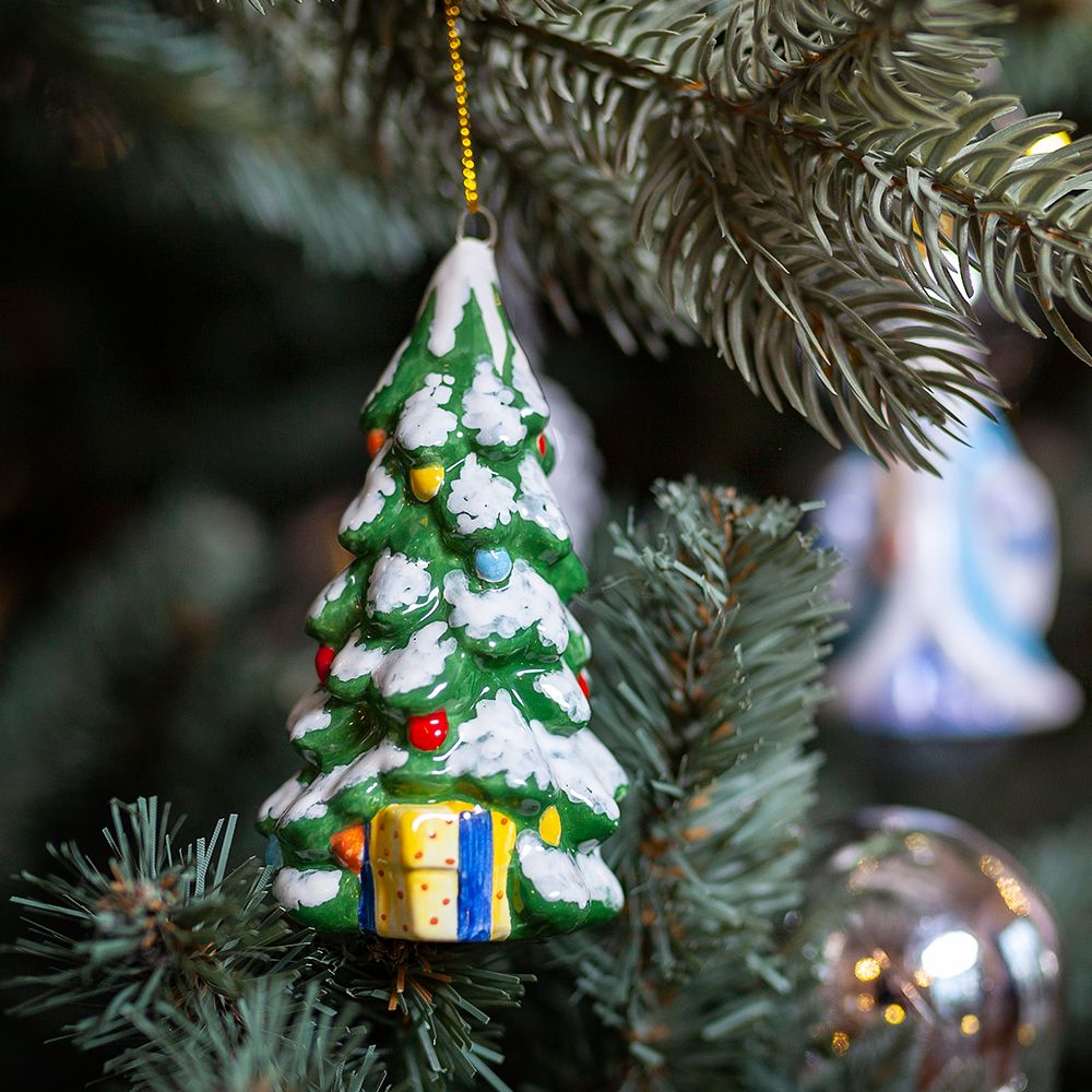 Керамическая игрушка празднично украшенная ель с подарками входит в набор “Новый год”. Она расписана художником самыми звонкими и яркими красками. Художник с великолепным вкусом отобразил главный символ новогодних праздников и Рождества. Изделие наполнено запомнившейся с детства атмосферой волшебства, предвкушения исполнения желаний. Елочная игрушка — это прекрасная возможность подарить близким радость и праздничное настроение. Ёлка станет прекрасным подарком на Новый год и Рождество.
