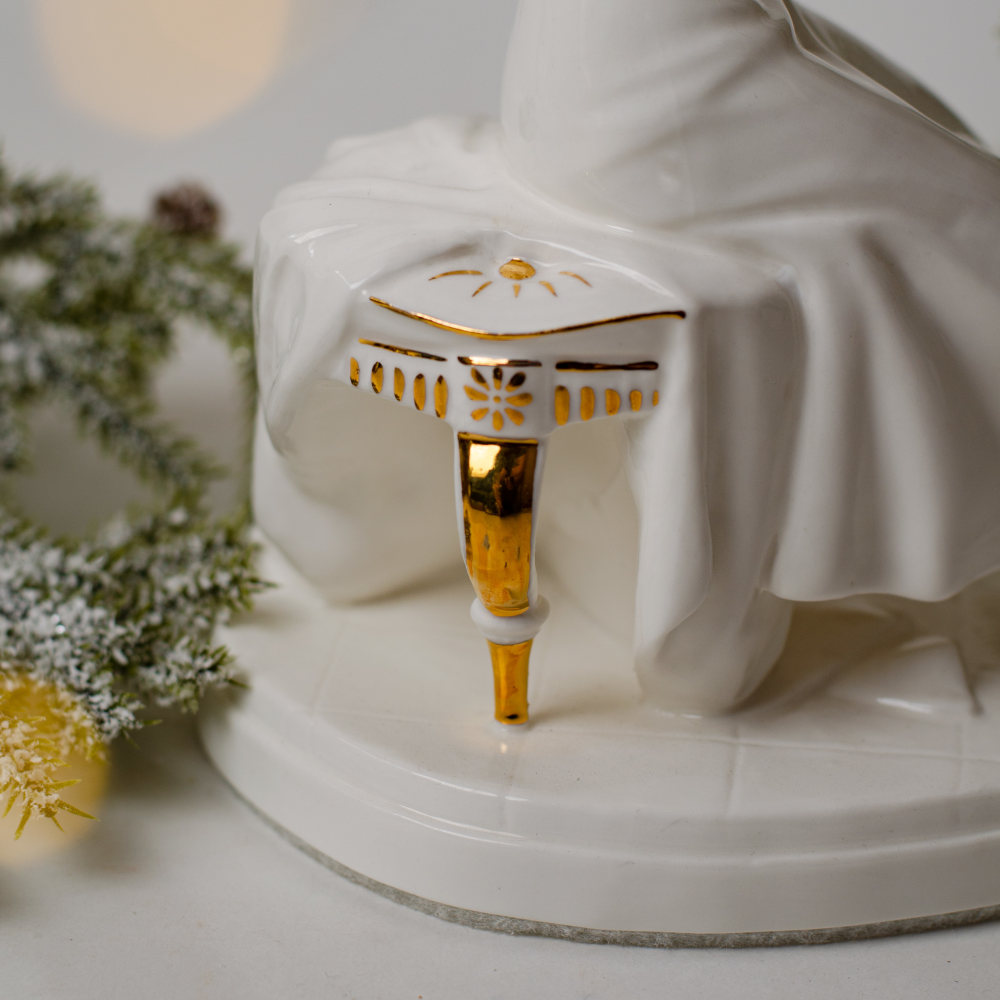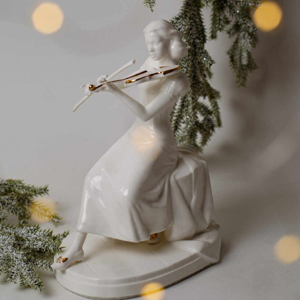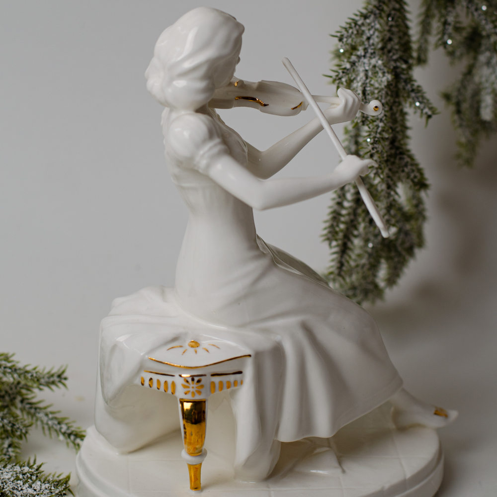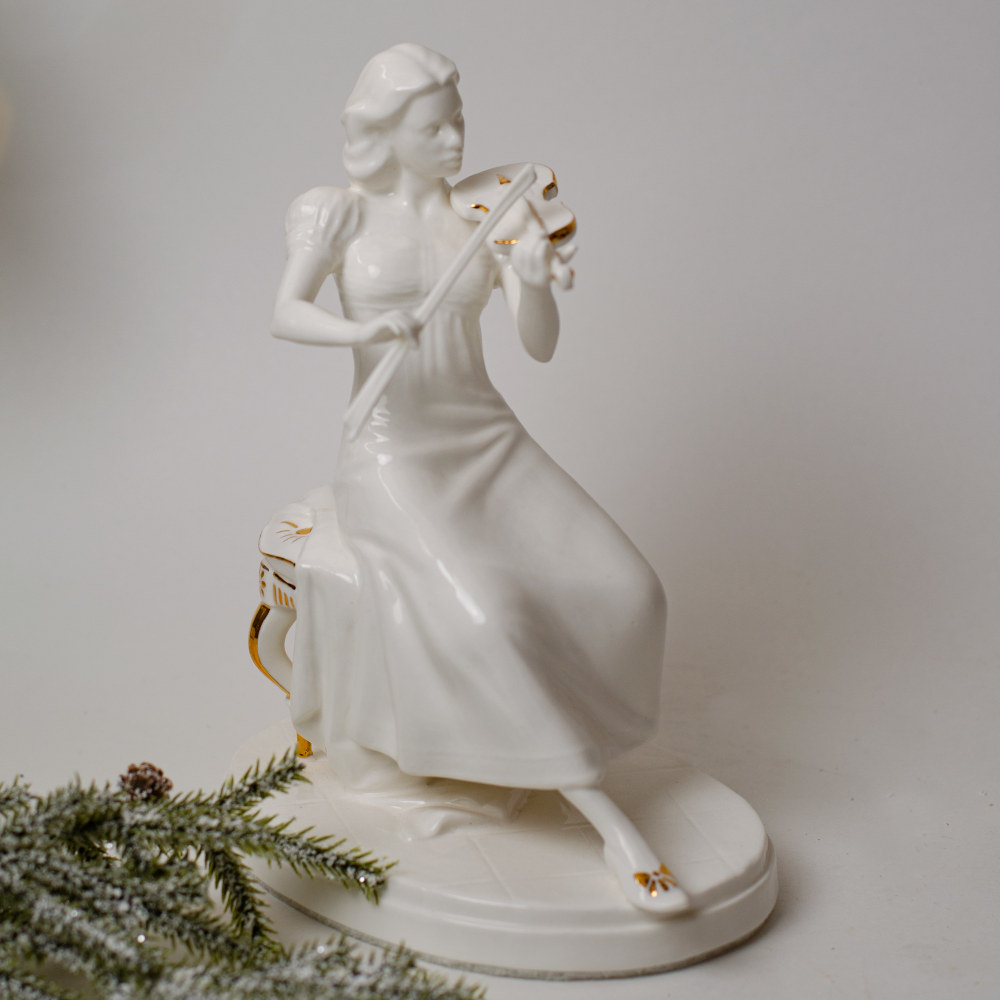 Фигурка “Скрипачка” — воплощение красоты, грации и эстетики ручной работы. Изготовленная из фарфора, она украшена ручной росписью золотом, которые подчеркивают изящество деталей и придают изделию особый шик и благородство.