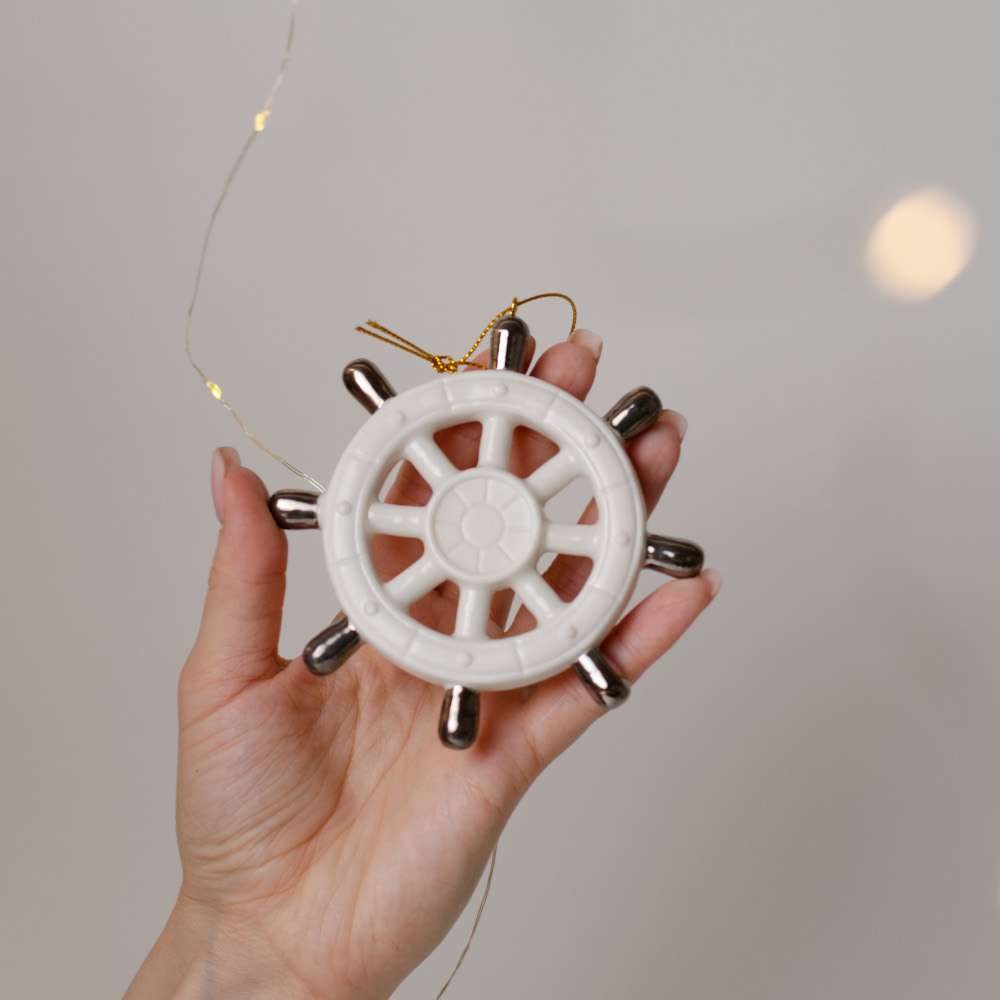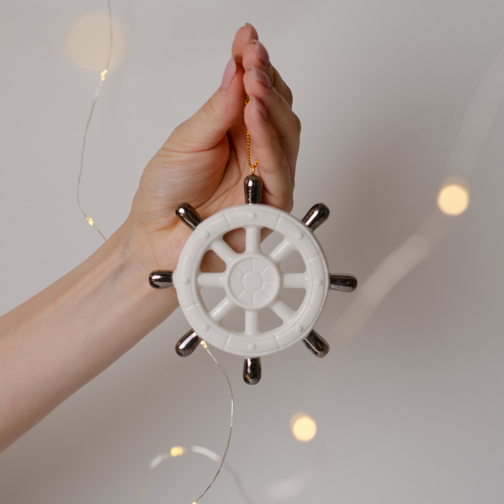 Подвес “Штурвал” будет прекрасно смотреться среди новогодних огней на елке или в праздничной композиции, создавая атмосферу тепла и уюта, а также напоминая о бескрайних морских просторах и незабываемых путешествиях.