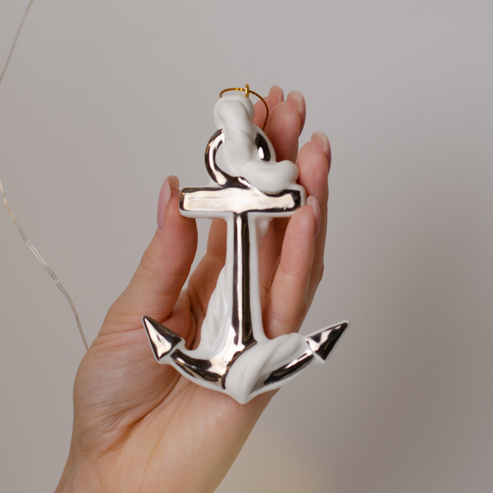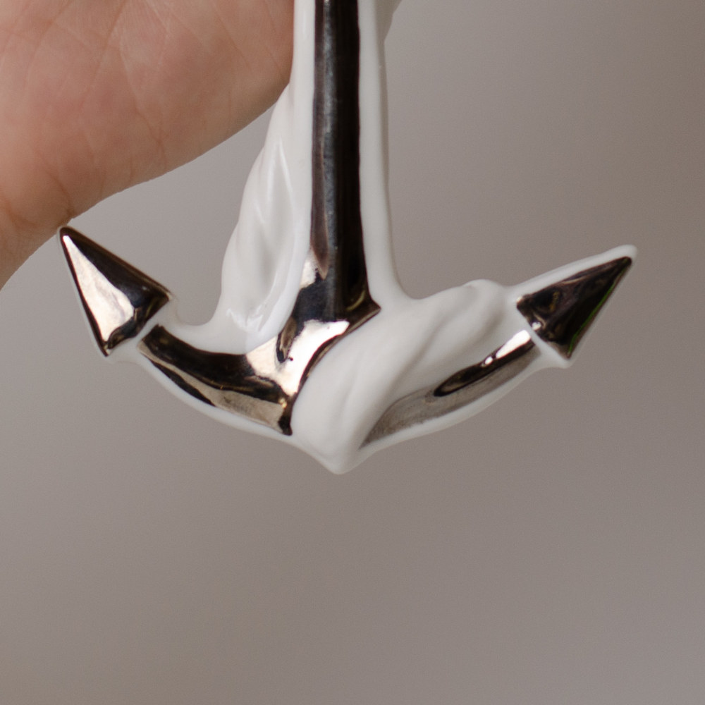 Подвес из фарфора бисквита “Якорь”, станет настоящей жемчужиной вашего праздничного интерьера. Выполненный в форме корабельного якоря, это украшение олицетворяет дух морских приключений и свободы, наполняя атмосферу волшебством и романтикой.