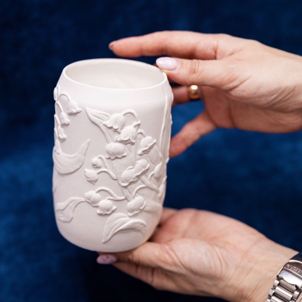 Изделие ручной работы, представляет собой подсвечник с цветочным рельефом в виде ландышей. На языке цветов Ландыши означают – верность и чистоту. По христианскому сказанию, цветы выросли из слез Богоматери, когда она оплакивала распятого сына. Этот фарфоровый подсвечник создает тепло и уют в доме. Фарфор до такой степени тонкий, что ландыши кажутся настоящими. Этот подсвечник будет хорошим подарком близким, друзьям, ценителям растений или корпоративным подарком на Новый год.