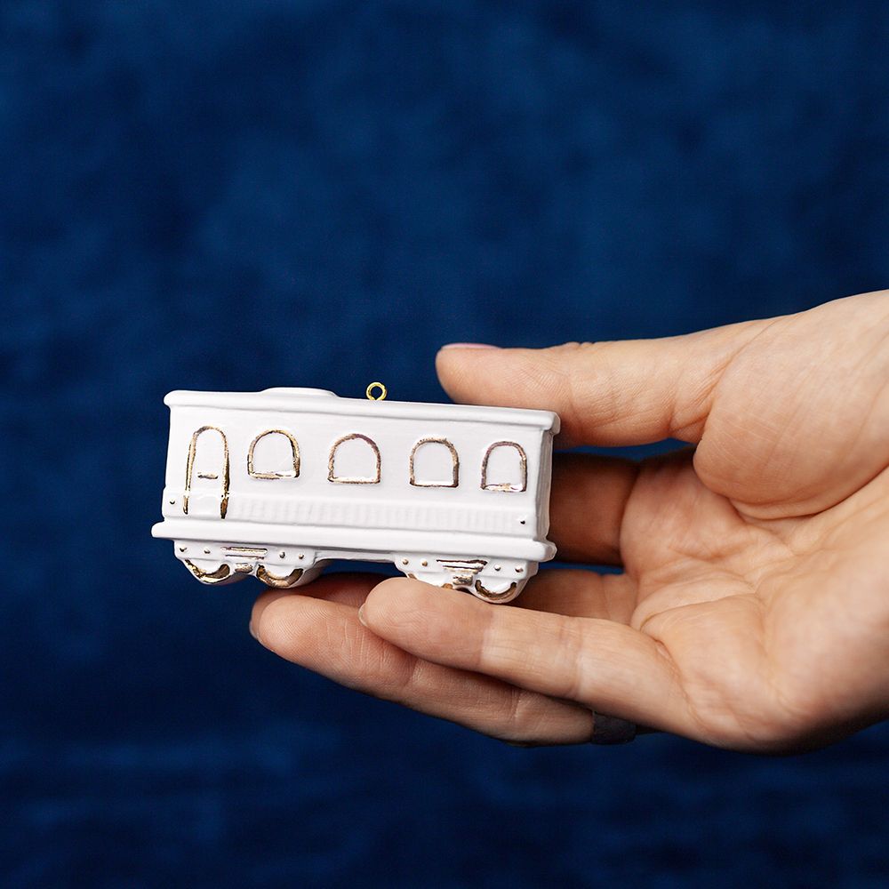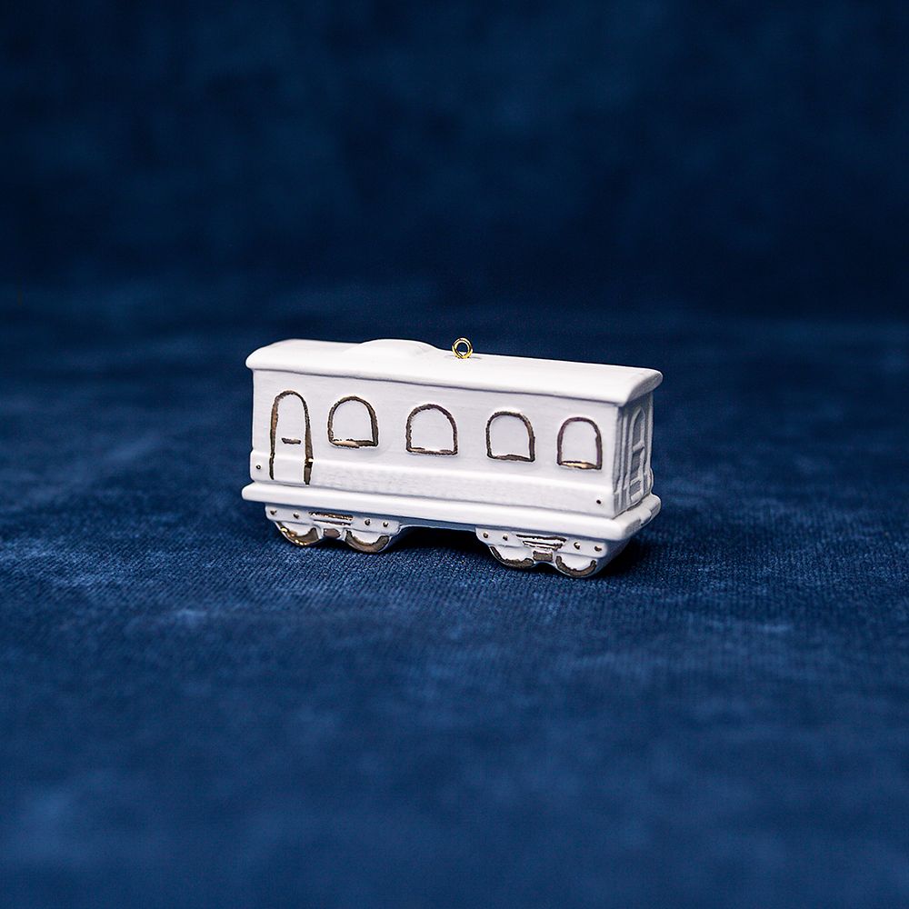 Ёлочная игрушка Вагончик пассажирский (фарфор, золото)
