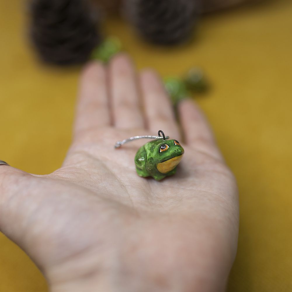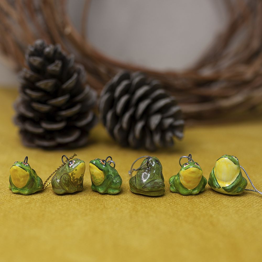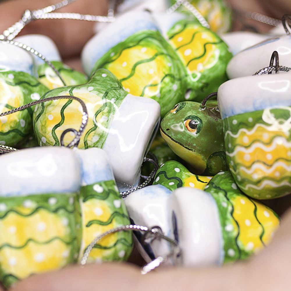 Подвес “”Лягушонок”” выполнен в технике майолика, украшен ручной художественной росписью и входит в коллекцию украшений “”Для маленькой ёлочки””. В Китае лягушка имеет много символических значений, таких как богатство, долголетие, бессмертие и гармония. Она также ассоциируется с инь, лунным началом, что придает ей еще более глубокий и философский смысл. Этот подвес станет замечательным украшением для маленькой ёлочки, а также символичным подарком для близких и друзей. Соберите всю коллекцию мини-украшений, чтобы малышка-елочка была самой красивой и нарядной.”