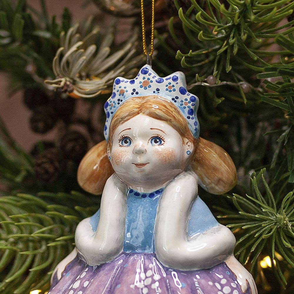 Изделие входит в коллекцию Ёлка и представляет фигурку малышки в стильном костюме снежинки. Безмятежное спокойствие и сдержанная улыбка на лице, торчащие из под ободка хвостики, накидка, отороченная мехом и пышная юбочка делают малышку такой реальной, что не оторвать глаз. Эта Снежинка будет восхитительным украшением новогодней елочки, милым подарком по любому поводу, украсит интерьер детской, порадует коллекционеров.