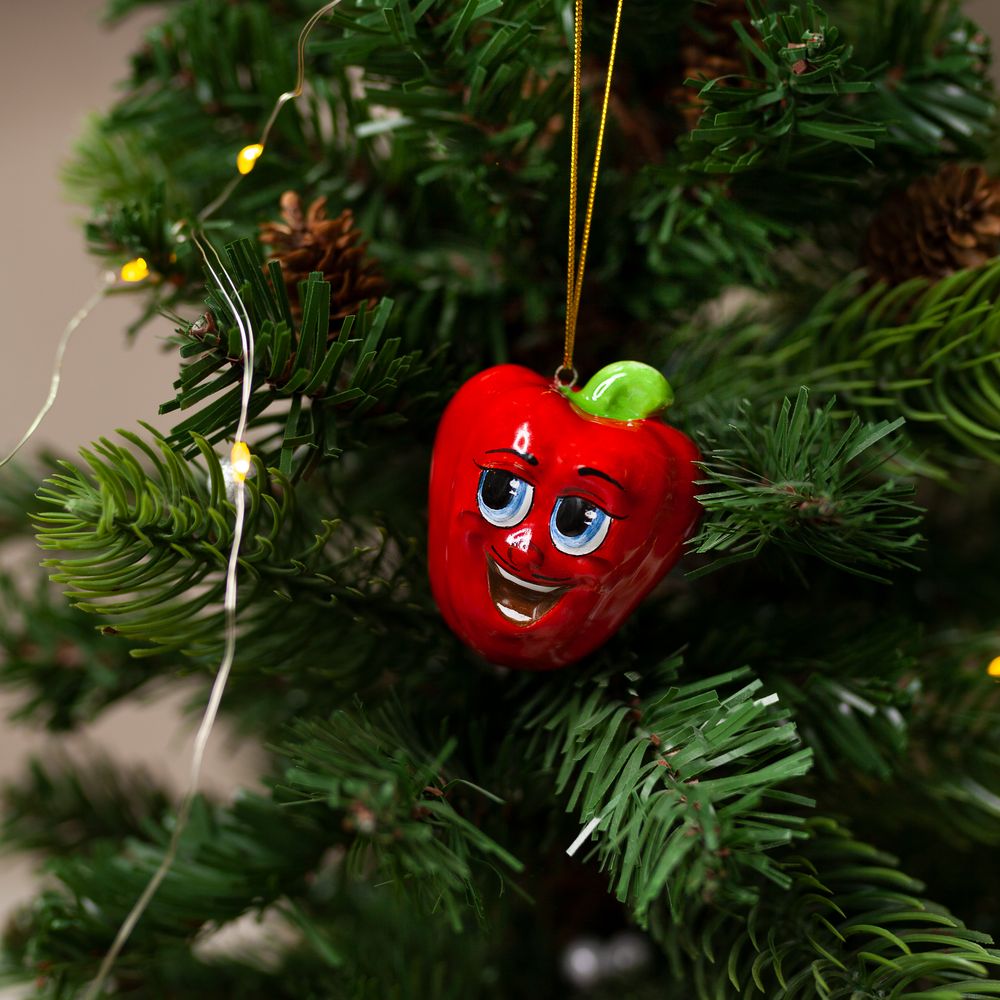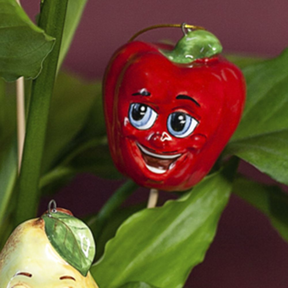 Изделия ручной работы входят в коллекцию “Фруктовые эмоции” и представляют собой бравых молодцов перцев с элегантными усами и черными бровями. Художник воспользовался всей роскошной палитрой современных керамических глазурей, чтобы перчики выглядели яркими, веселыми, с обаятельной улыбкой. Данное изделие станет украшением вашего интерьера, создаст настроение, будет чудесным подарком. Соберите всю коллекцию ярких, красивых, эмоциональных овощей и фруктов. Изделия из этой коллекции могут быть также использованы для создания эффектных интерьеров в кафе, ресторанах, барах, для украшения новогодней ели или как модель на уроках рисования.