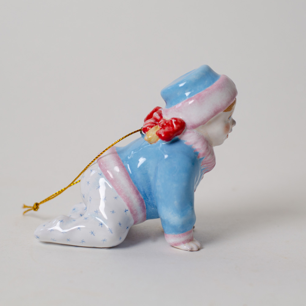 Эксклюзивное изделие входит в коллекцию “Малыши”. Малышка в костюме Снегурочки смотрит на мир широко распахнутыми голубыми глазами. Фигурка крохи завораживает: в ней столько жизни, радости и счастья. Гармоничное цветовое сочетание, реалистичное исполнение этой красивой игрушки подарят праздничное настроение, вы сможете украшать свою зеленую красавицу много лет, эту игрушку можно передать по наследству, она сможет стать статусным подарком вашим друзьям и близким.