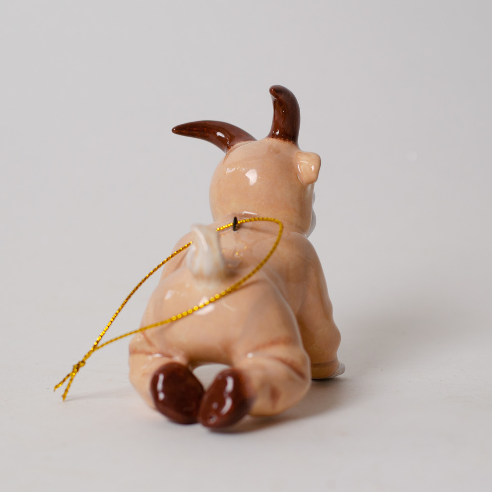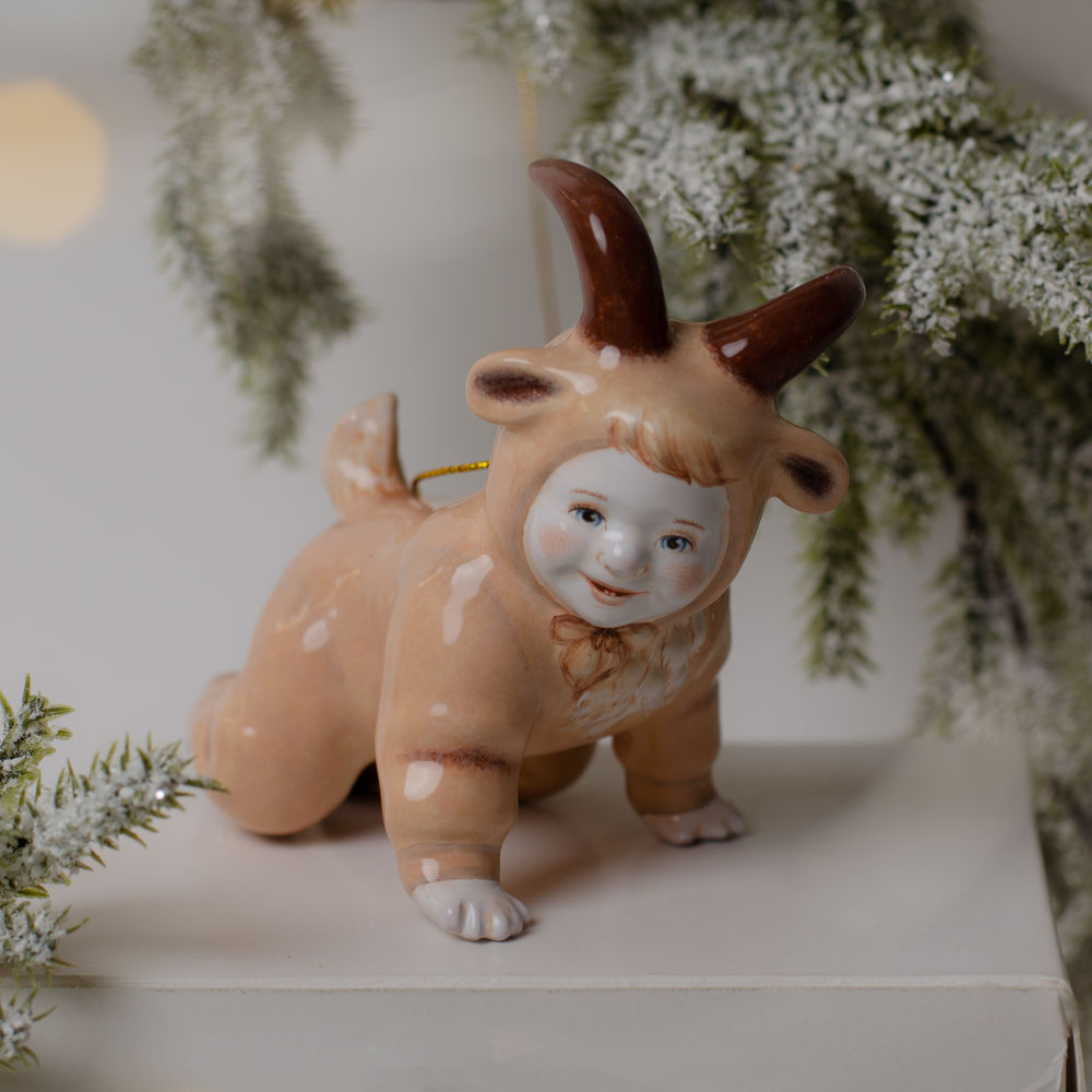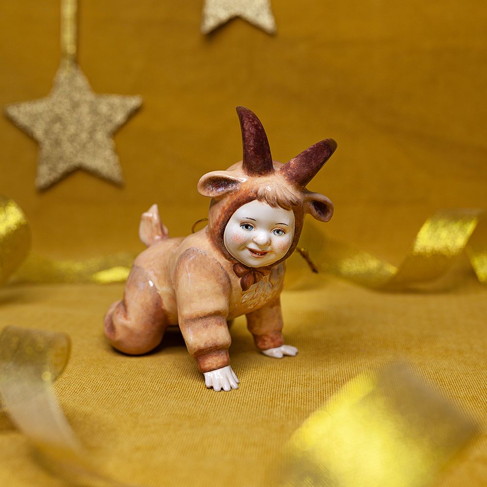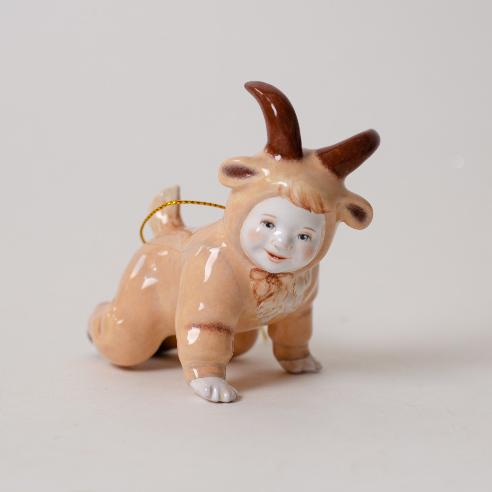 Эксклюзивное изделие входит в коллекцию “Малыши”. Кроха, который только научился ползать, в костюме козленка выглядит живо и непосредственно. Карапуз расписан художником с большой любовью. Гармоничное цветовое сочетание, реалистичное исполнение этой красивой игрушки подарят праздничное настроение, вы сможете украшать свою зеленую красавицу много лет, эту игрушку можно передать по наследству, она сможет стать статусным подарком вашим друзьям и близким.