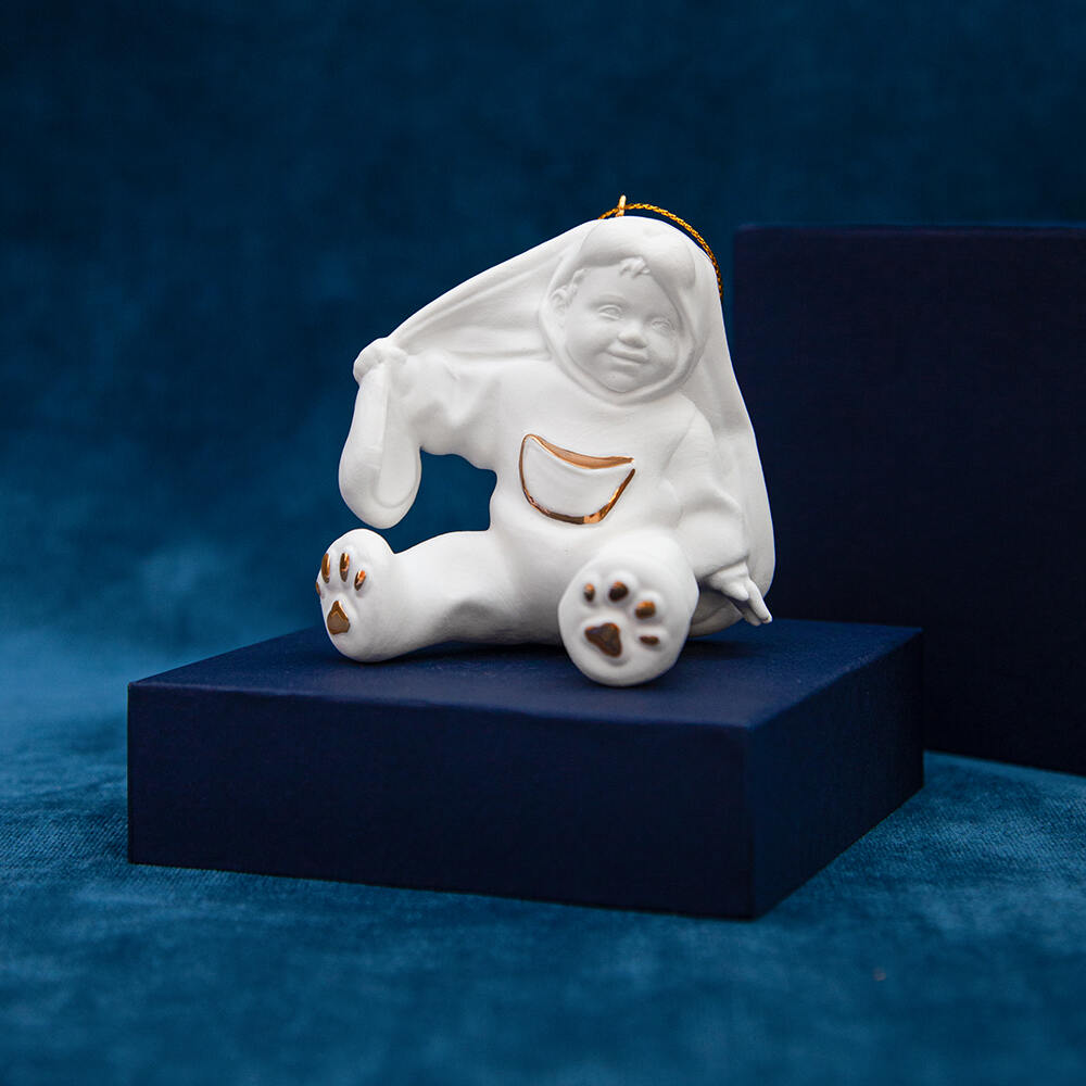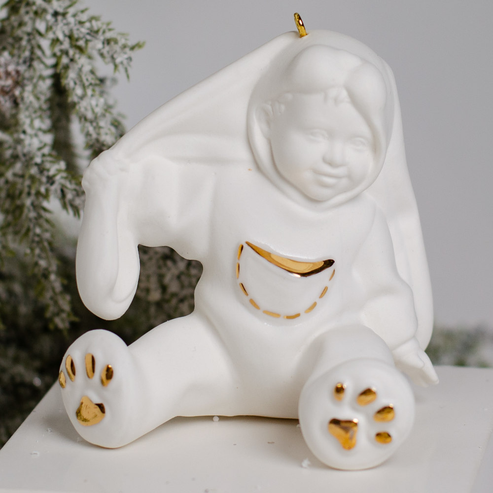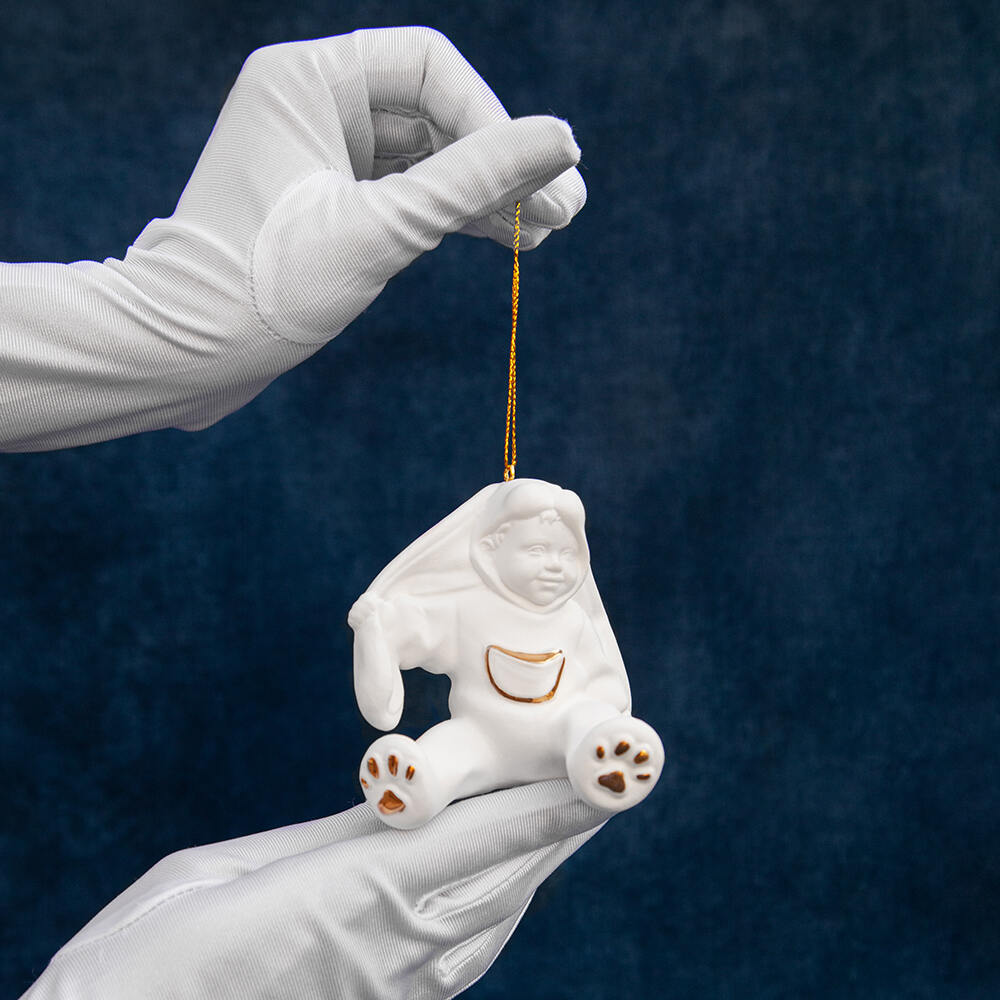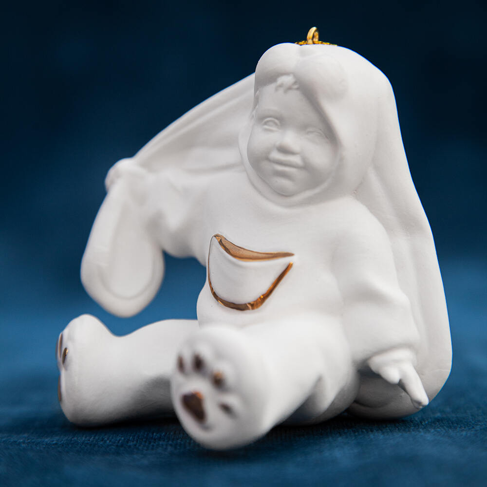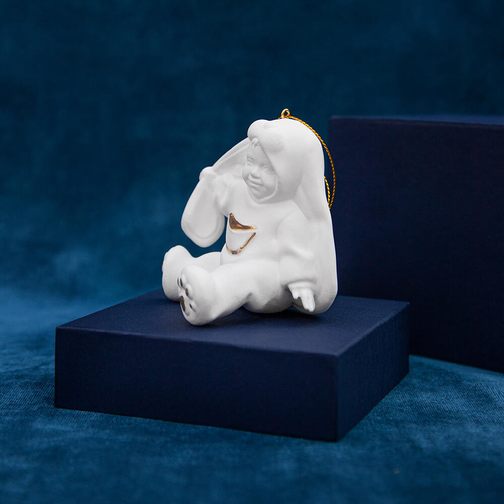 Главная » Каталог изделий » Для дома » Коллекционный фарфор » Фарфор, коллекция «Малыши» » Ёлочная игрушка малыш-Зайчонок малый (фарфор, золото)
