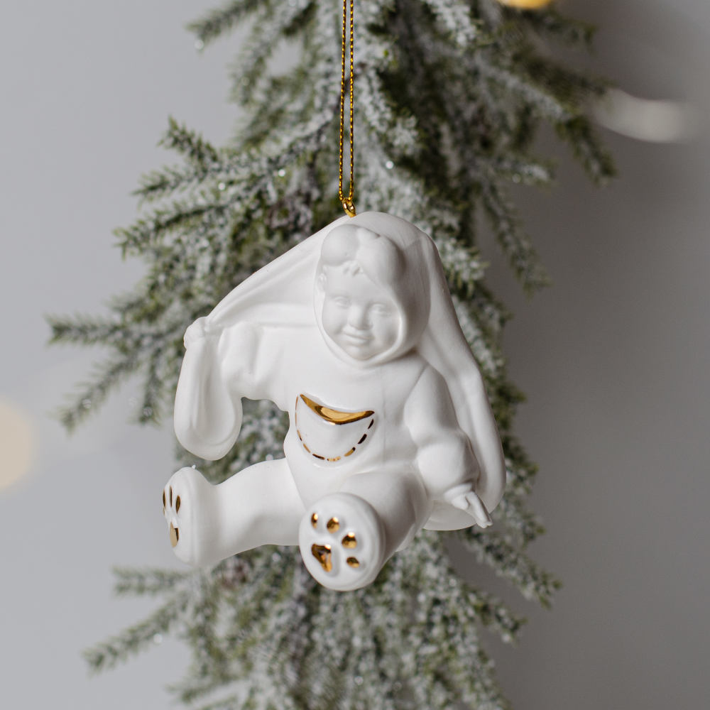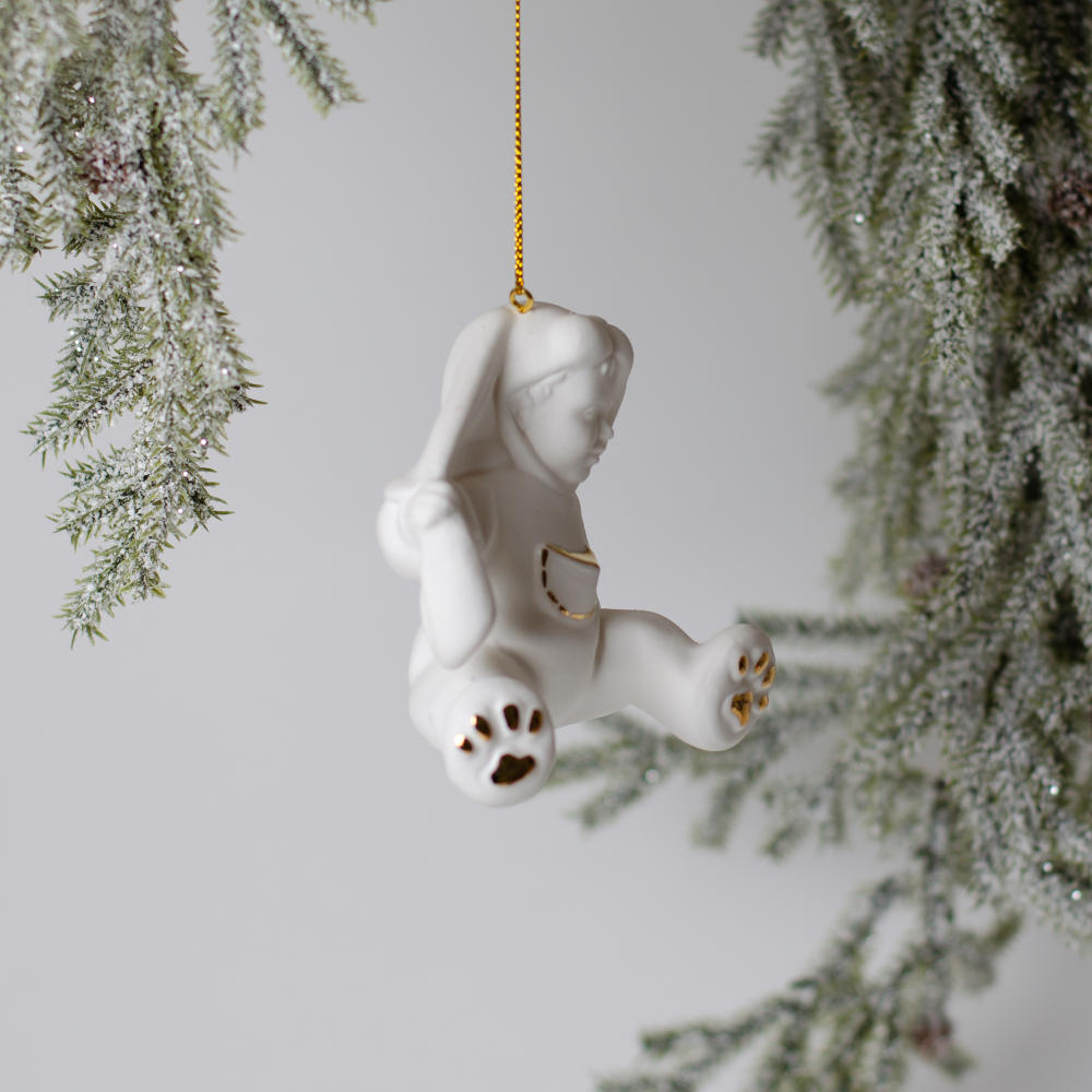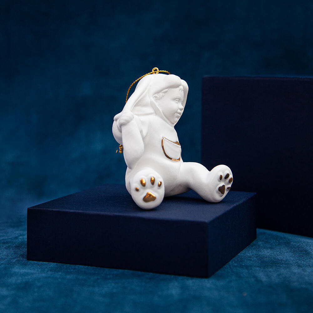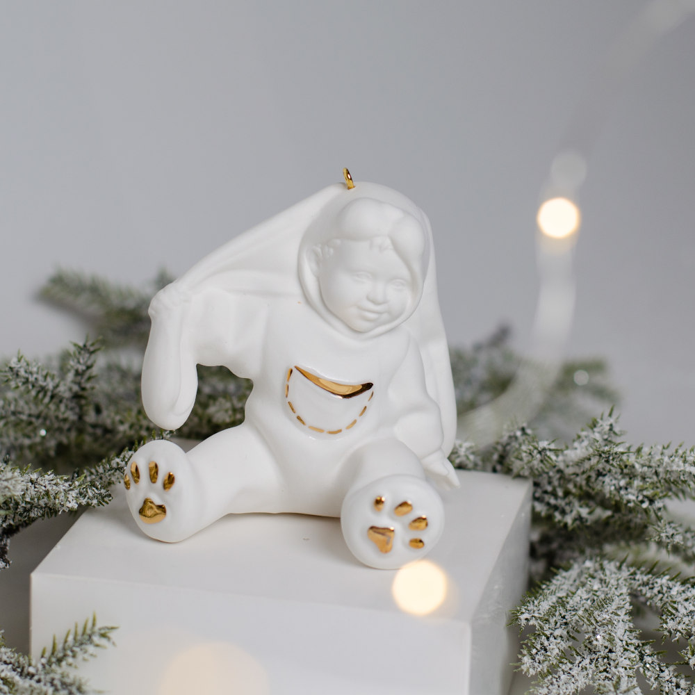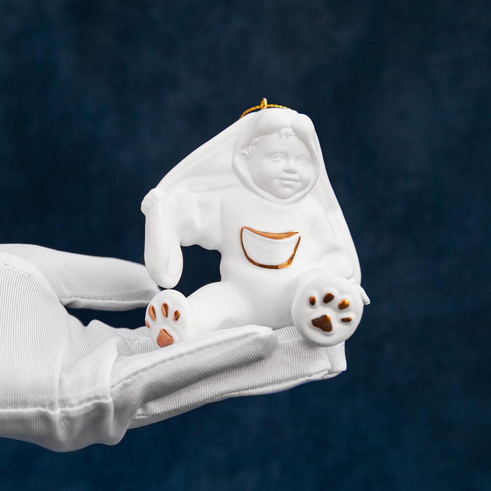Главная » Каталог изделий » Для дома » Коллекционный фарфор » Фарфор, коллекция «Малыши» » Ёлочная игрушка малыш-Зайчонок малый (фарфор, золото)