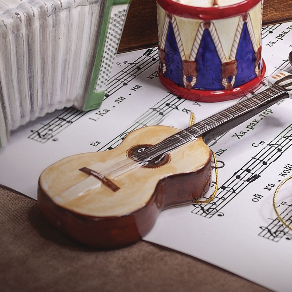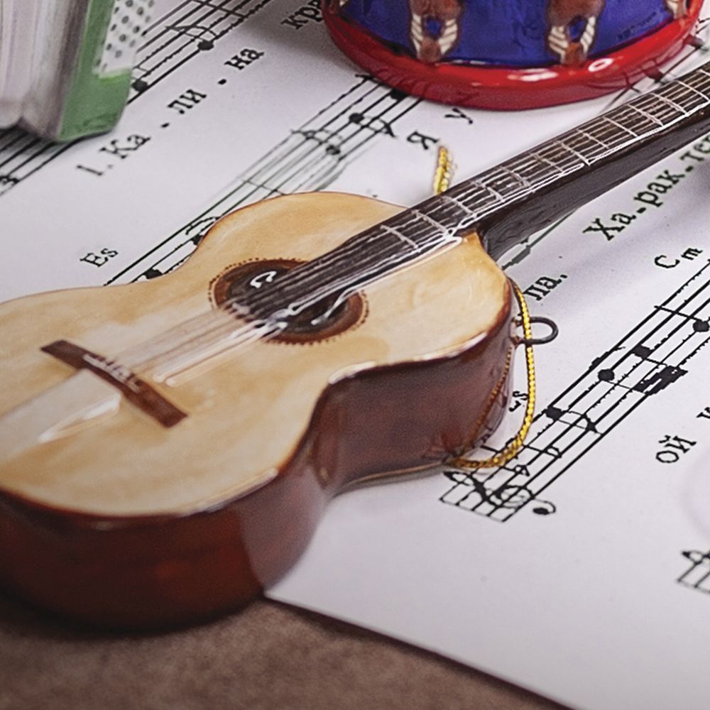 Елочная игрушка Гитара ручной работы входит в коллекцию “Музыкальные инструменты”. Гитара – это тот инструмент, который снимает покровы с тайн человеческой души. Гитара плачет, скорбит, страдает, но никогда не впадает в безысходное отчаяние. Наша Гитара будет чудесным украшением новогодней ели, замечательным подарком и подойдет для оформления интерьера как дома, так и музыкального салона, порадует коллекционеров.