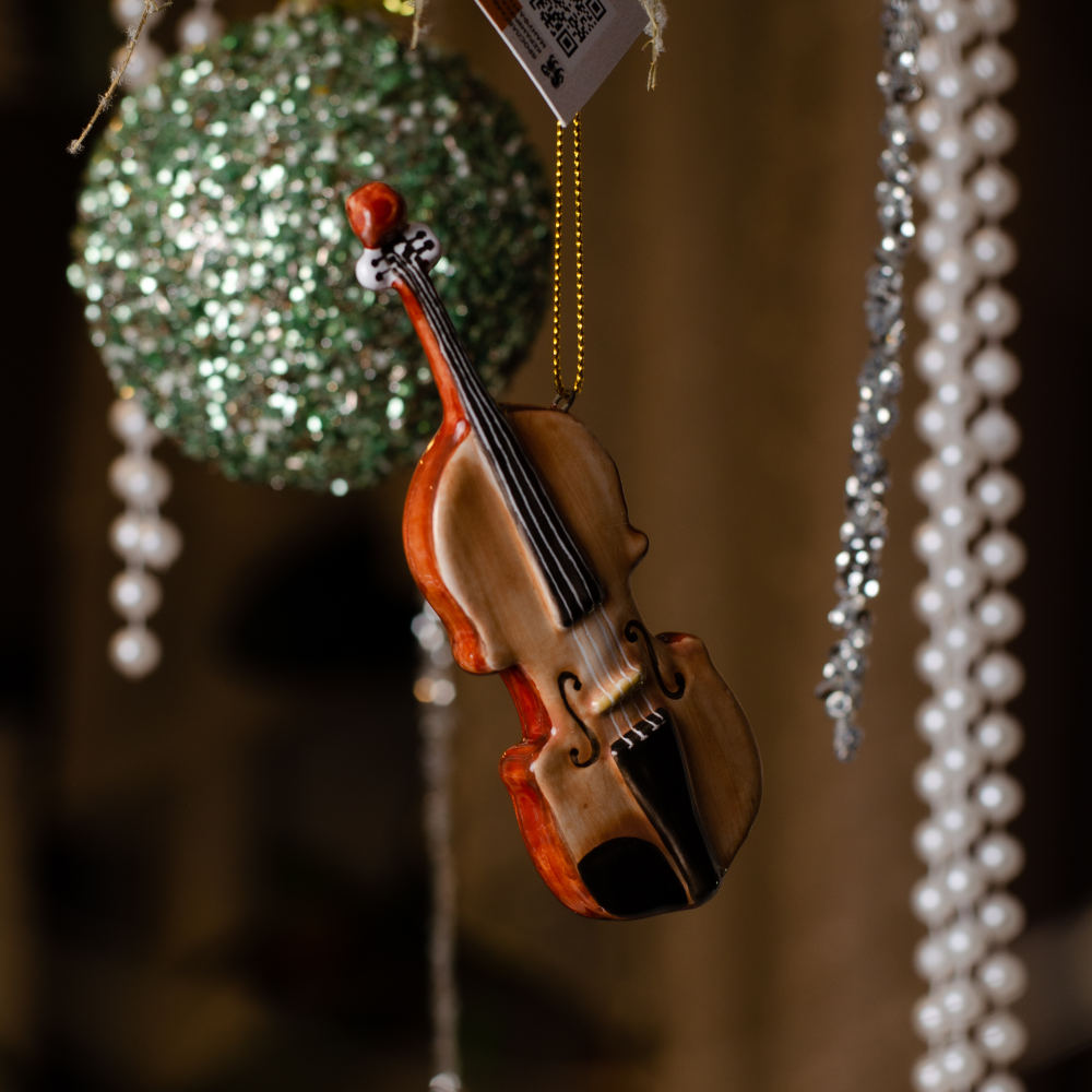 Подвес “Скрипка”, выполнен в технике майолика, украшен ручной художественной росписью и входит в эксклюзивную коллекцию “Музыкальные инструменты”. Скрипка – инструмент, способный звучать трепетно и нежно, либо грустно и глубоко, ведь он способен вызвать мистические переживания и перенести в другой, удивительный мир. Подвес станет прекрасным украшением для новогодней елки, прекрасным подарком для ценителей классической музыки и идеальным дополнением к интерьеру как дома, так и музыкального салона. Он обязательно порадует как коллекционеров, так и тех, кто ценит ручную работу и уникальные предметы.