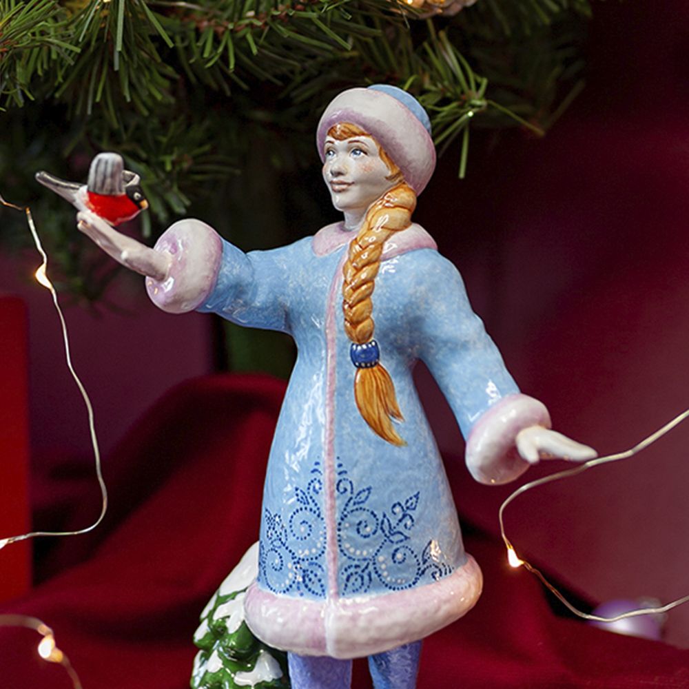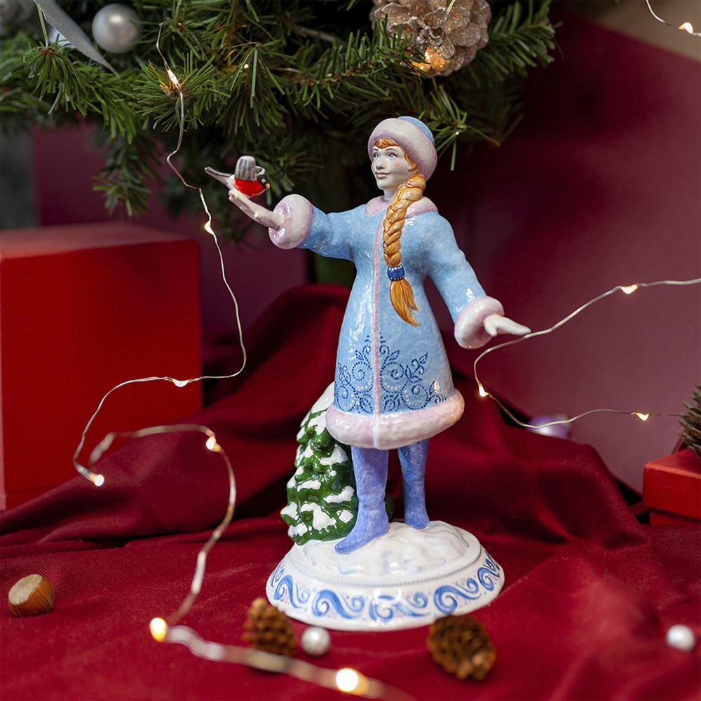 Фигурка ручной работы Снегурочка входит в коллекцию «Новый год». Наш художник изобразил сказочную девушку, внучку Деда Мороза. На новогодних праздниках она выступает его постоянной помощницей и спутницей. Русская красавица обладает невероятной притягательностью, это символ чистоты, юности и веселья. Снегурочка выполнена в нежных холодных оттенках, каждая характерная деталь фигуры передана с любовью к сказочному персонажу и празднику, с которым связаны детские воспоминания и ожидания чуда. Снегурочка станет замечательным подарком на Новый год и Рождество.