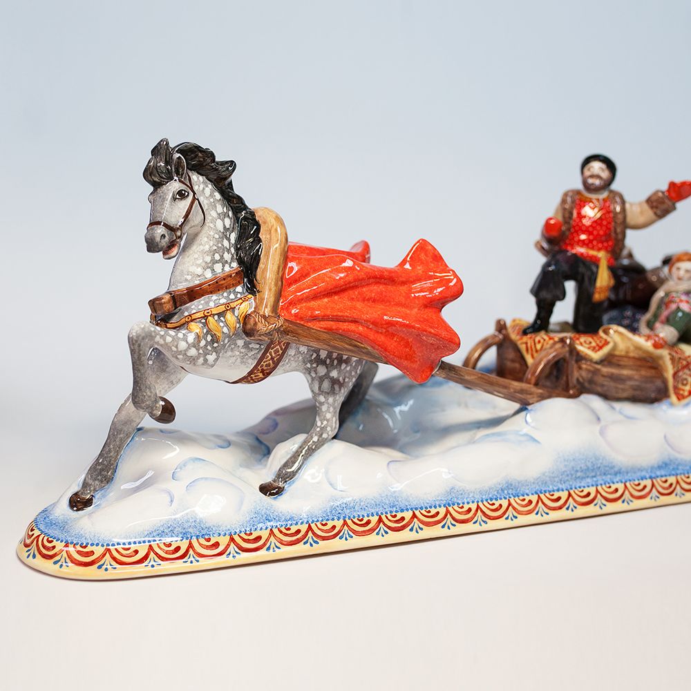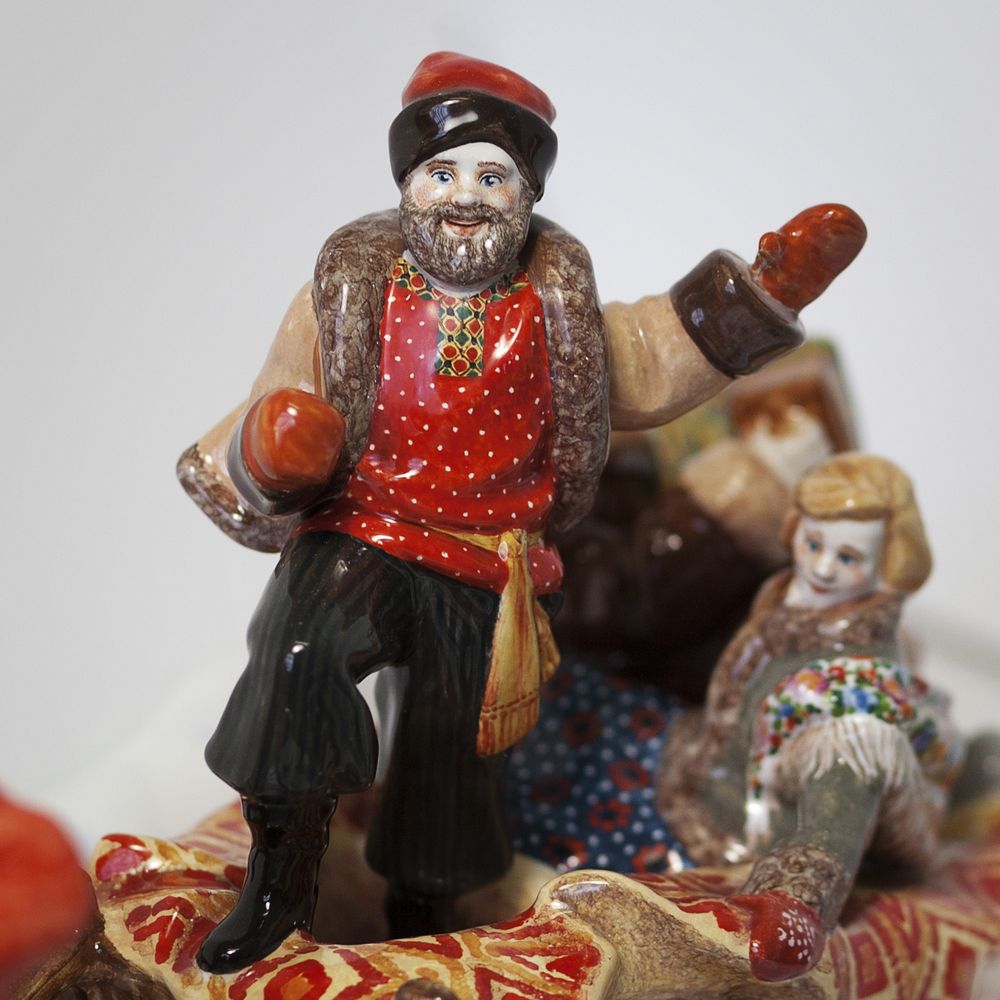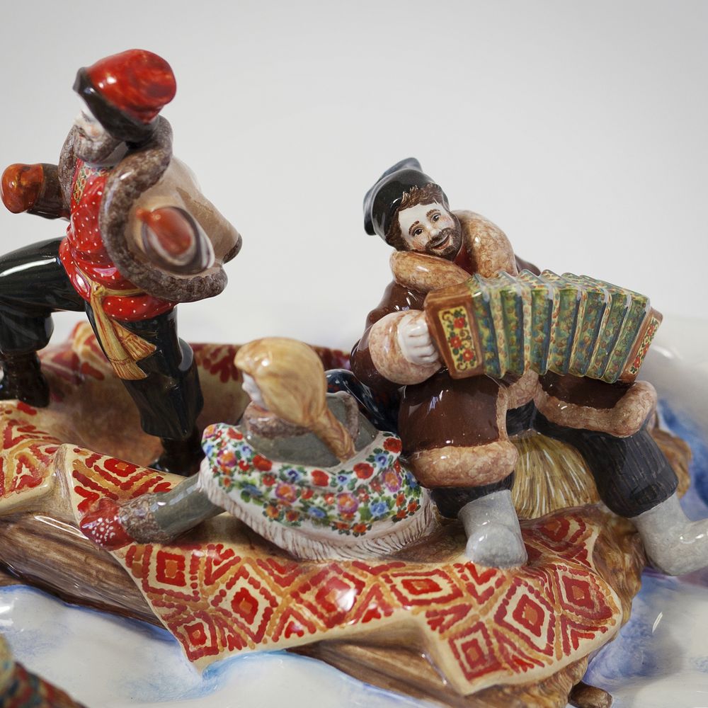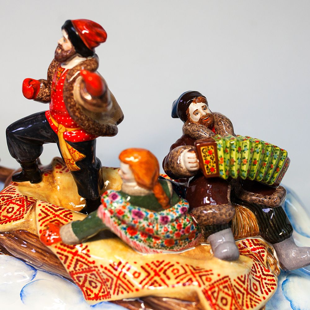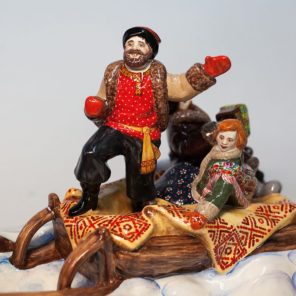 Композиция ручной работы “Зимнее гулянье” входит в коллекцию «Новый год». Зимнее гулянье всегда ассоциируется с веселыми зимними праздниками, с рождественскими и масленичными гуляниями. Это — символ широты русской души, символ веселья. Наша яркая эффектная композиция передает это наилучшим образом, она является настоящим произведением искусства, художником до мельчайших подробностей переданы и движения, и эмоции героев, и сам дух праздника. Это изделие будет эксклюзивным украшением вашего дома, изумительным подарком друзьям и близким, который оценят по достоинству.
