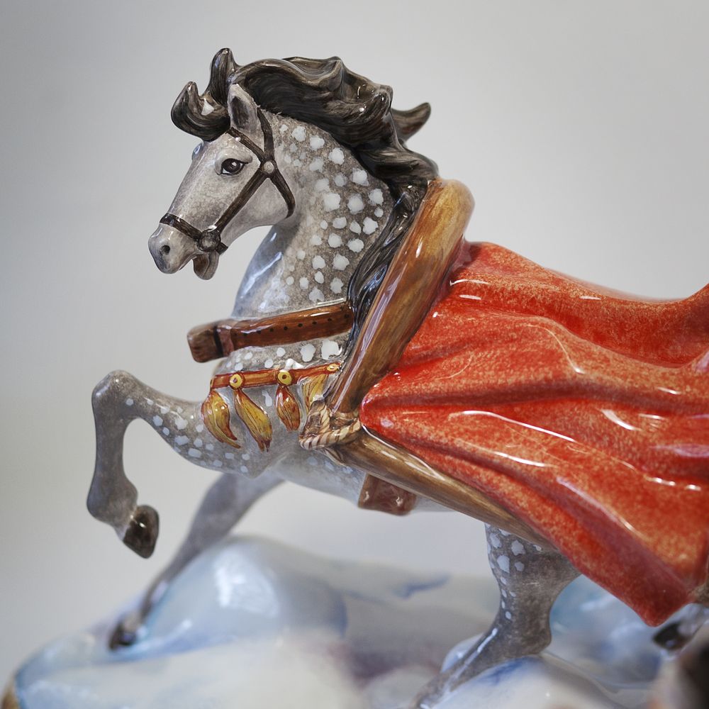 Изделие выполнено в технике майолика, материалы: красная глина, белая глазурь, высокотемпературный обжиг, ручная художественная роспись.