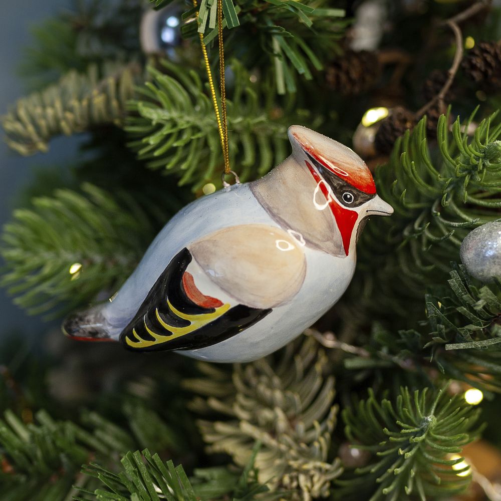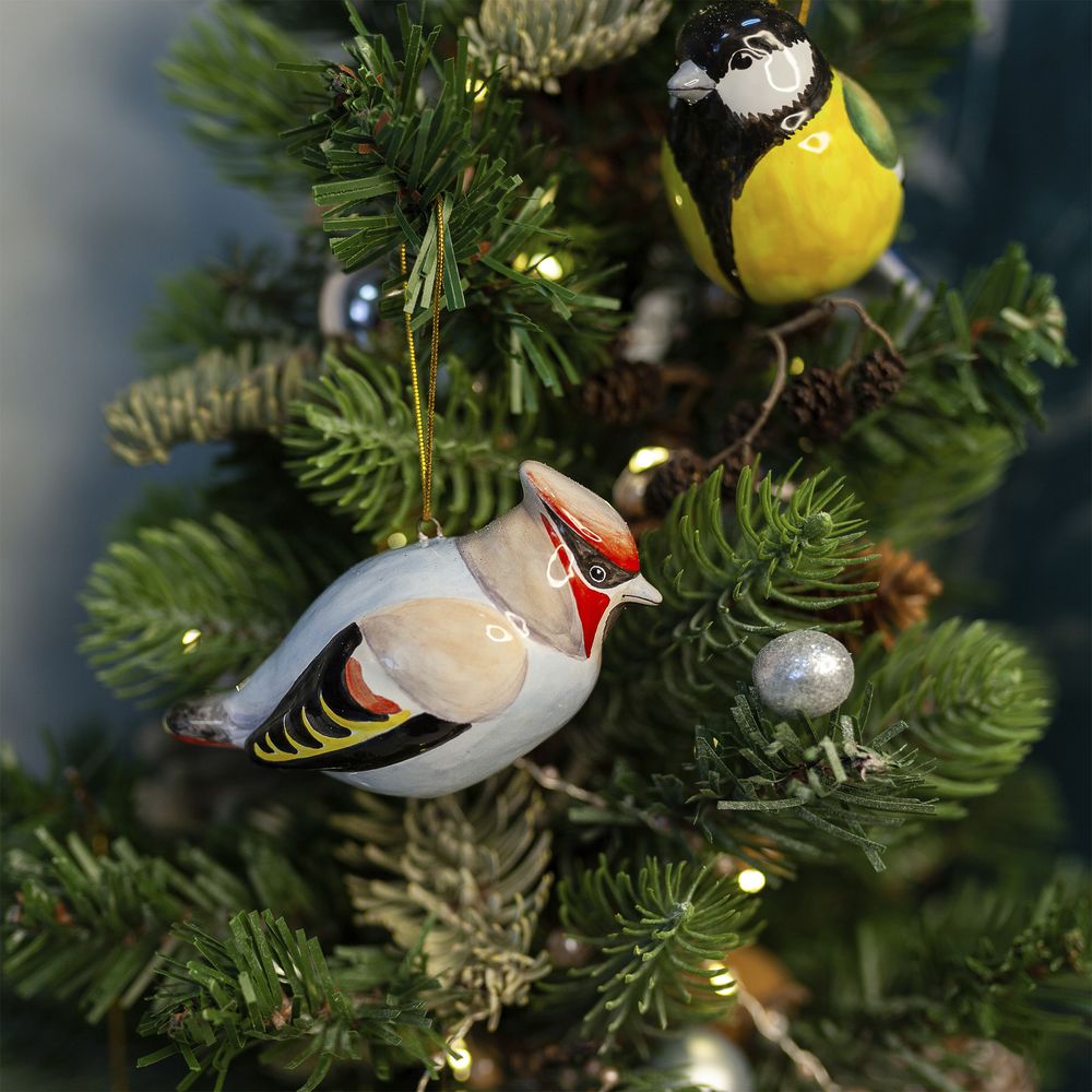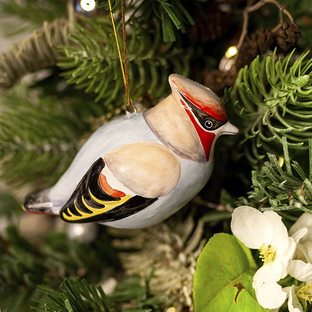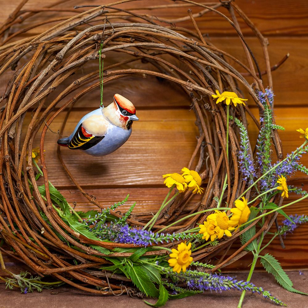 Изделие представляет подвес в виде небольшой фигурки свиристели, мастера пронзительных песен, звучащих с наступлением зимних холодов. Керамическая фигурка пташки с яркими крылышками и эффектным хохолком замечательно украсит новогоднюю ель, станет чудесным подарком родным, близким или тем, кому вы хотите передать положительные эмоции, порадует коллекционеров.
