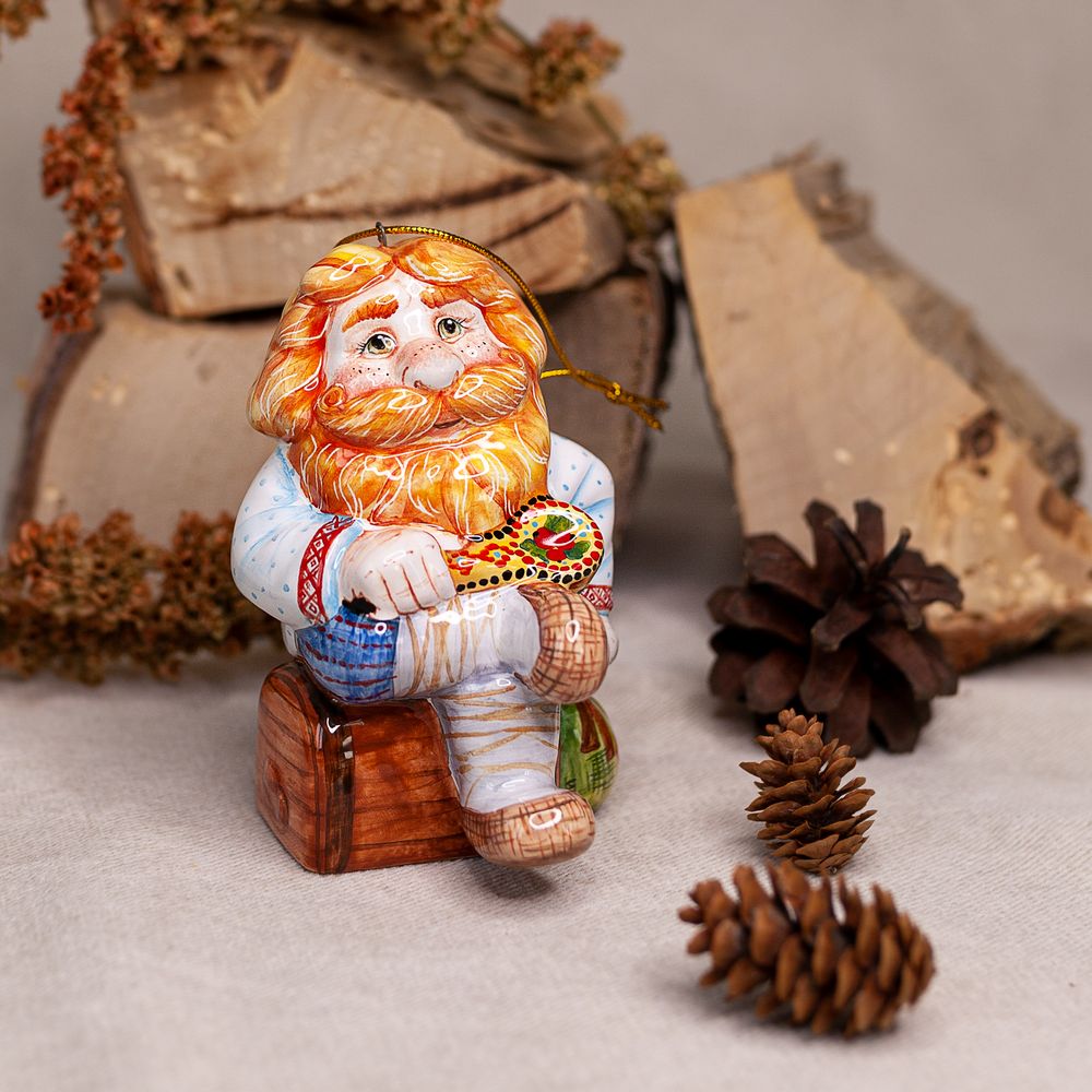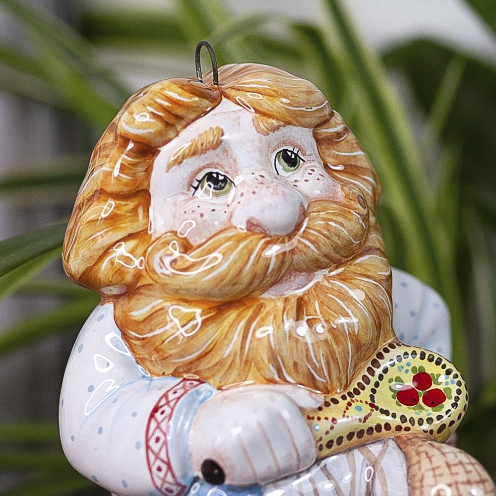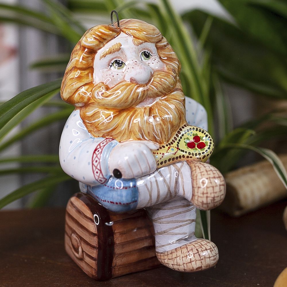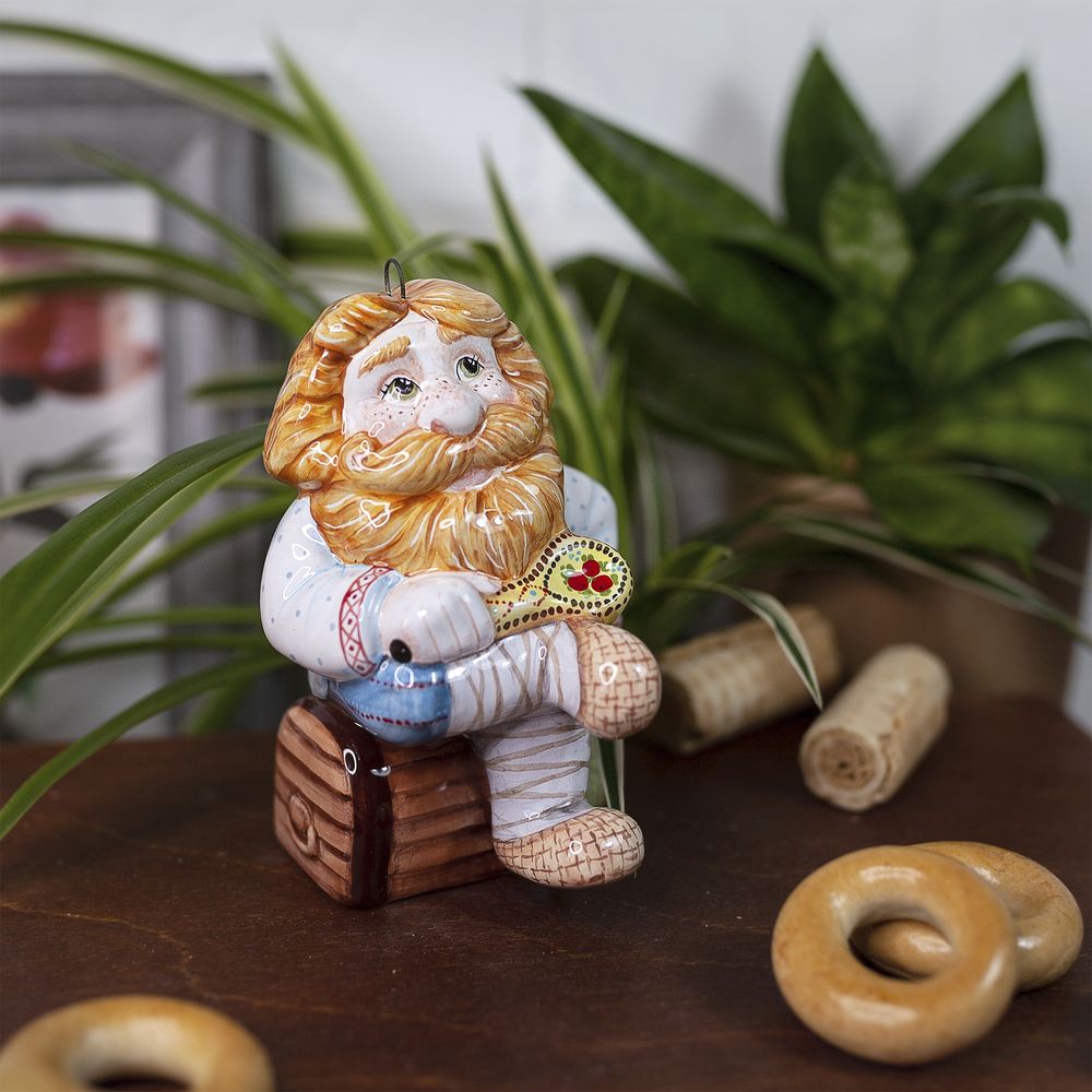 Изделие входит в коллекцию Сказки и представляет фигурку совсем ещё не старого, рыжего мужичка в рубахе и лаптях, сидящего на сундуке с с большой деревянной ложкой в руке. Этот добряк, который призван оберегать дом, хранить покой и порядок, никого не оставит равнодушным. Эксклюзивная керамическая фигурка – это чудесное изделие для оформления интерьеров, милый подарок, порадует оно и любителей сказок, и коллекционеров.