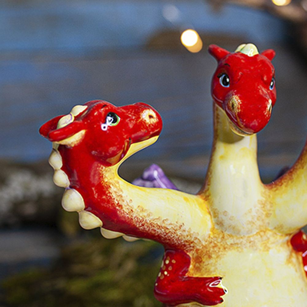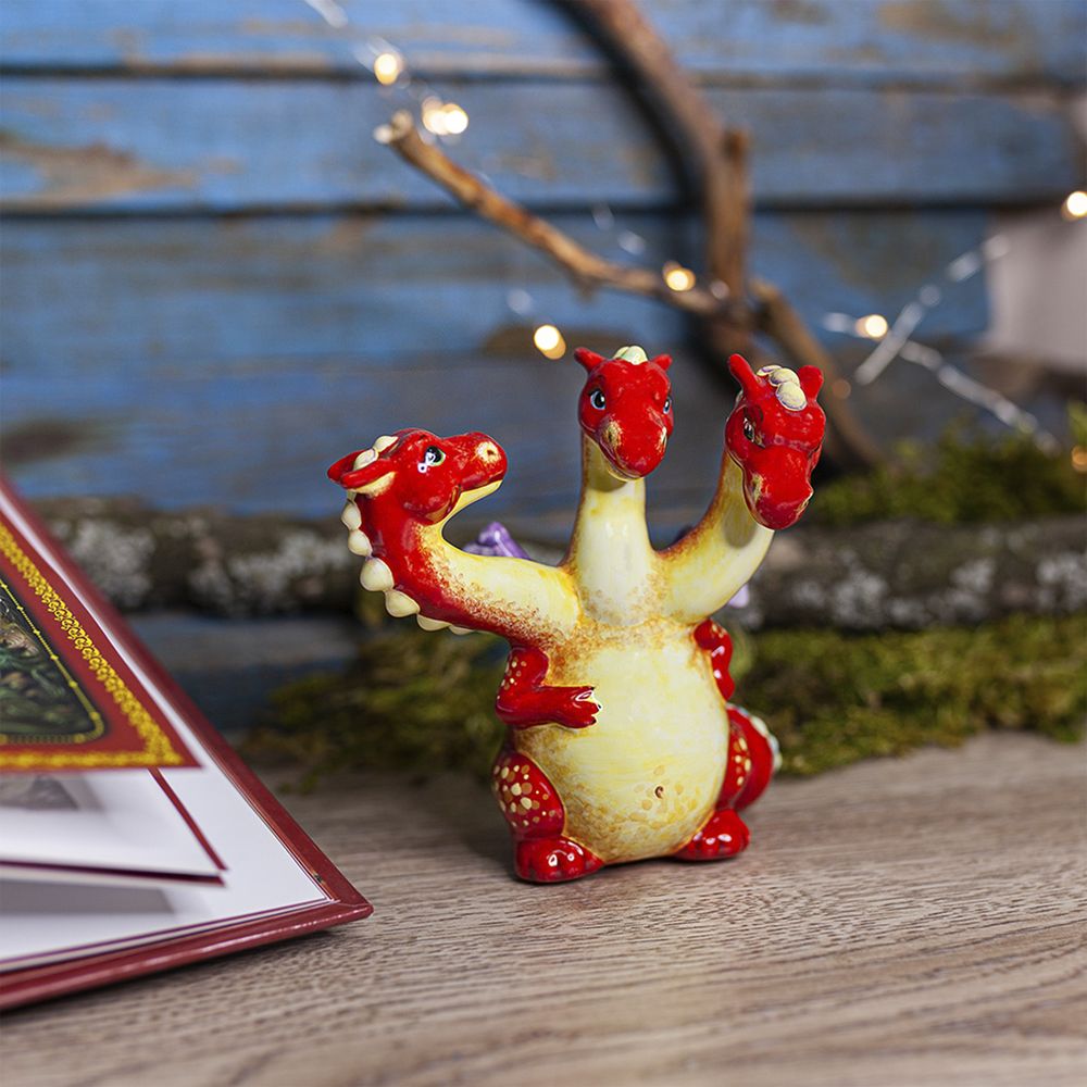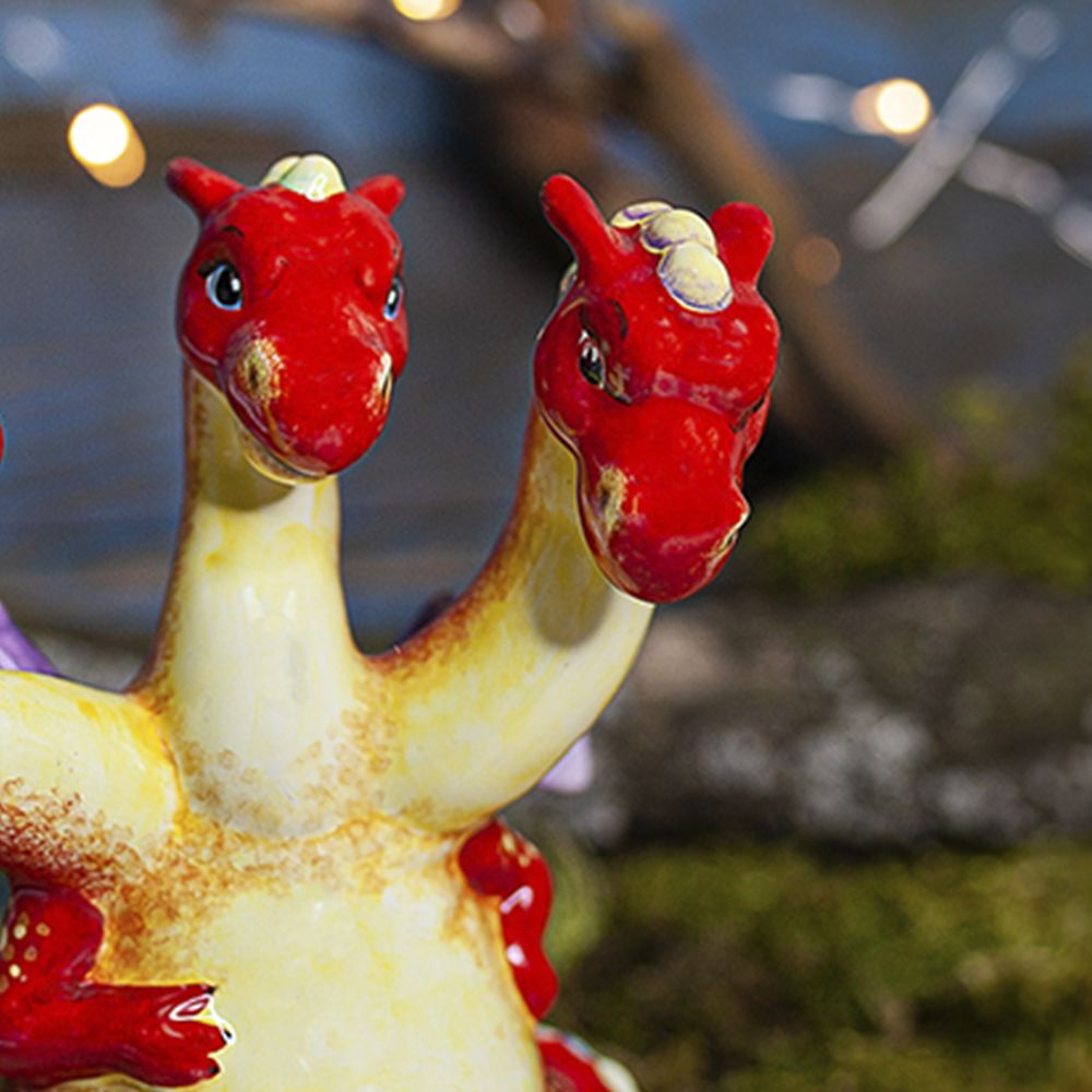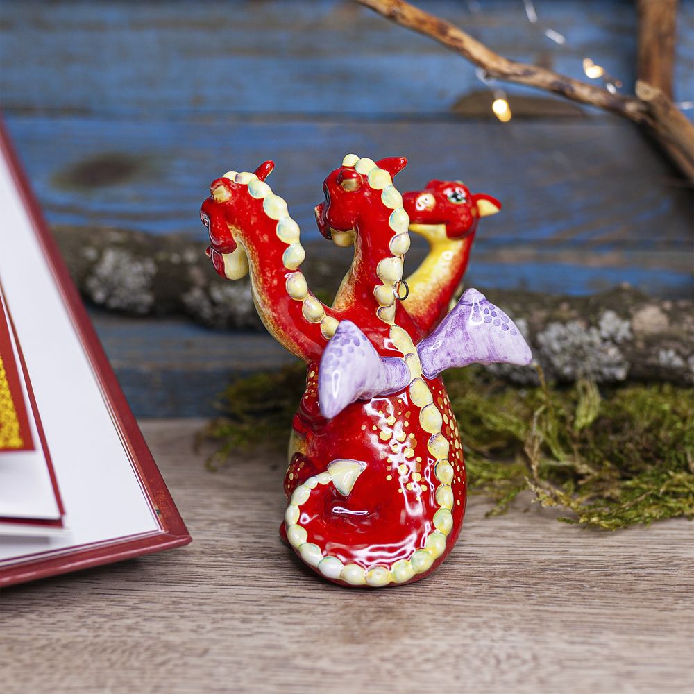 Подвес входит в коллекцию Сказки и представляет фигуру обаятельного Змея Горыныча – яркого персонажа славянского фольклора. Добродушный обжора переносит нас в мир сказок и волшебства, а переданные в керамике характер и эмоции никого не оставят равнодушными. Изумительное изделие для новогодней елки, эксклюзивный подарок, также порадует оно любителей сказок и коллекционеров.