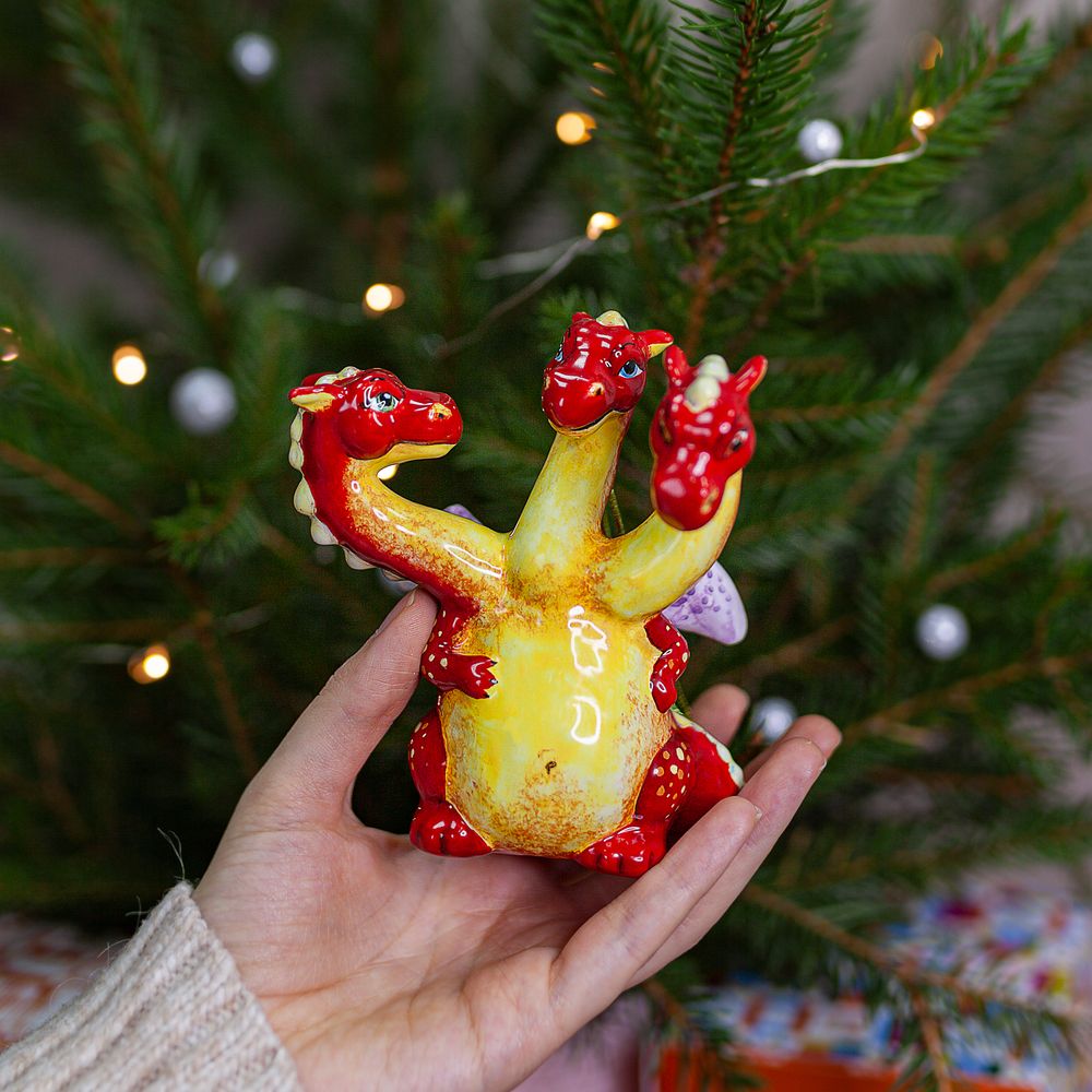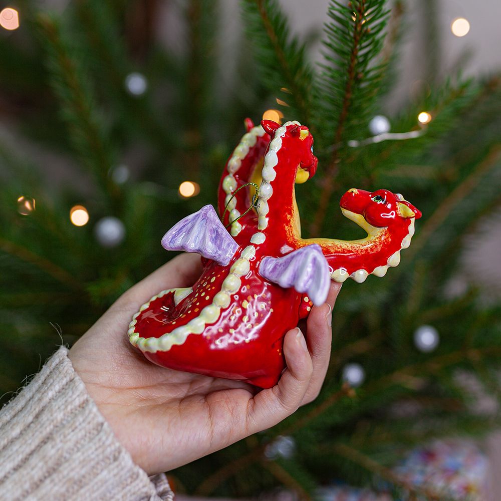 Змей Горыныч елочный красный подвес из набора “Сказки”