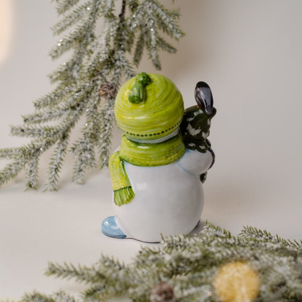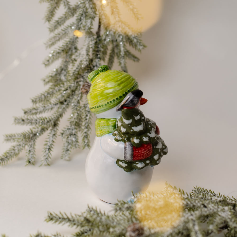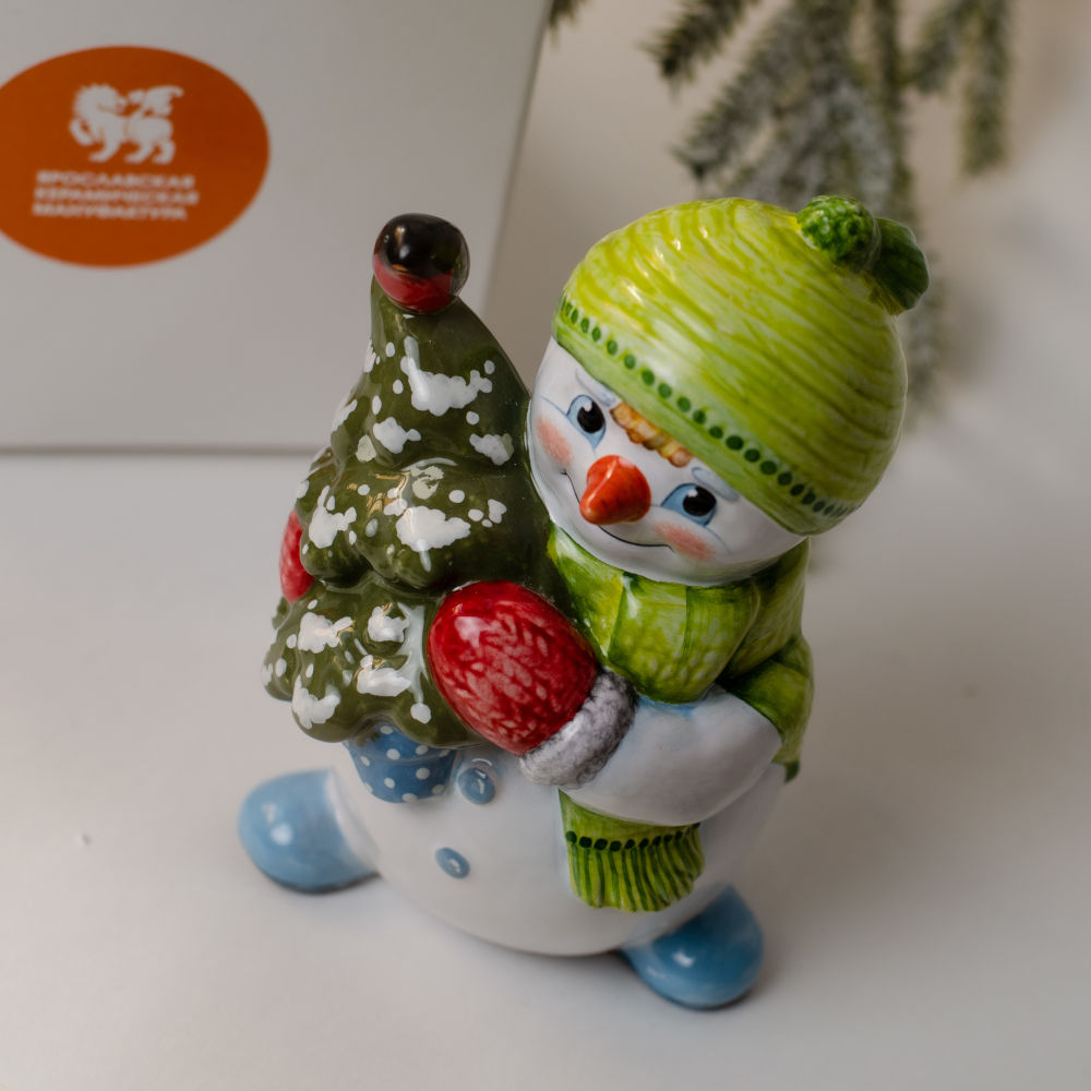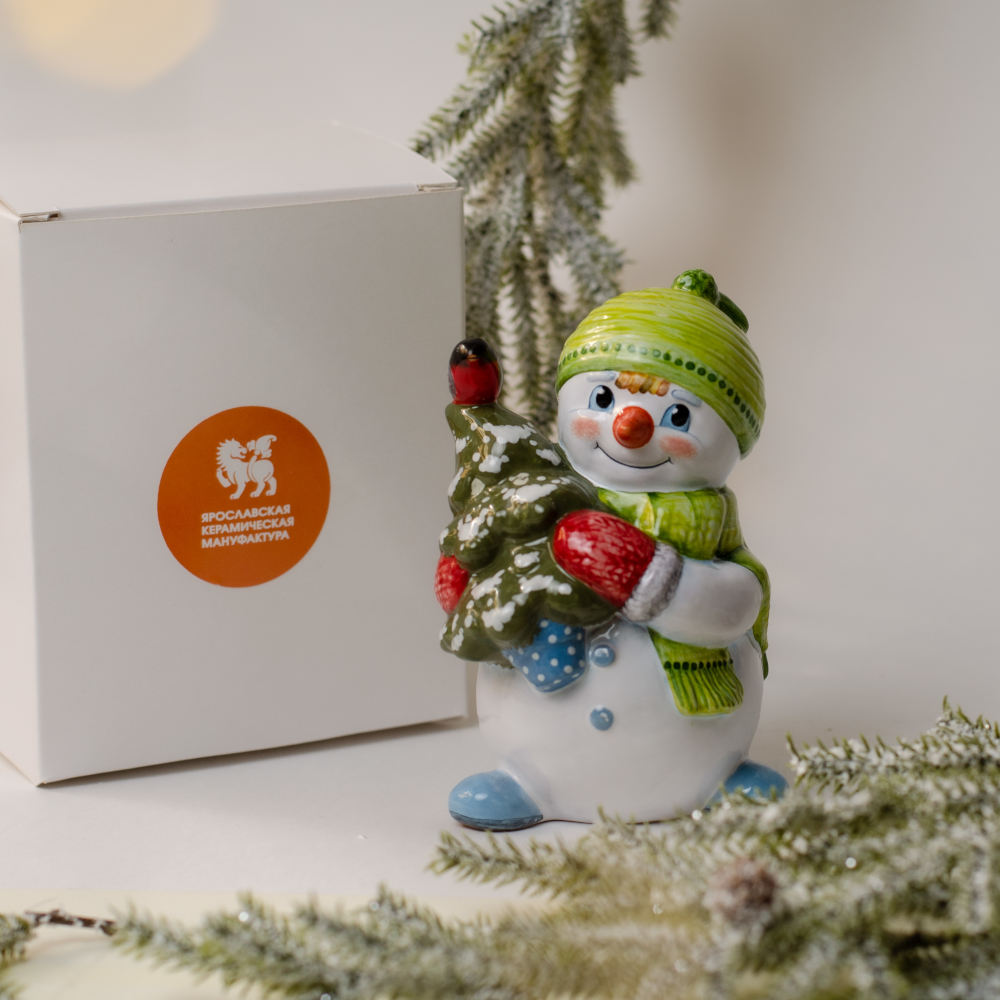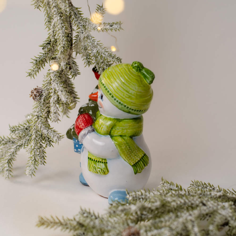 Снеговик с елкой майолика