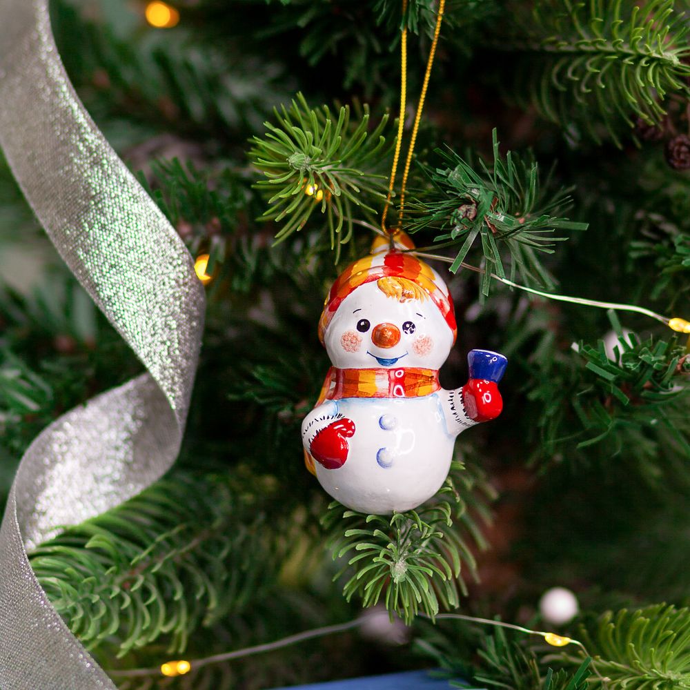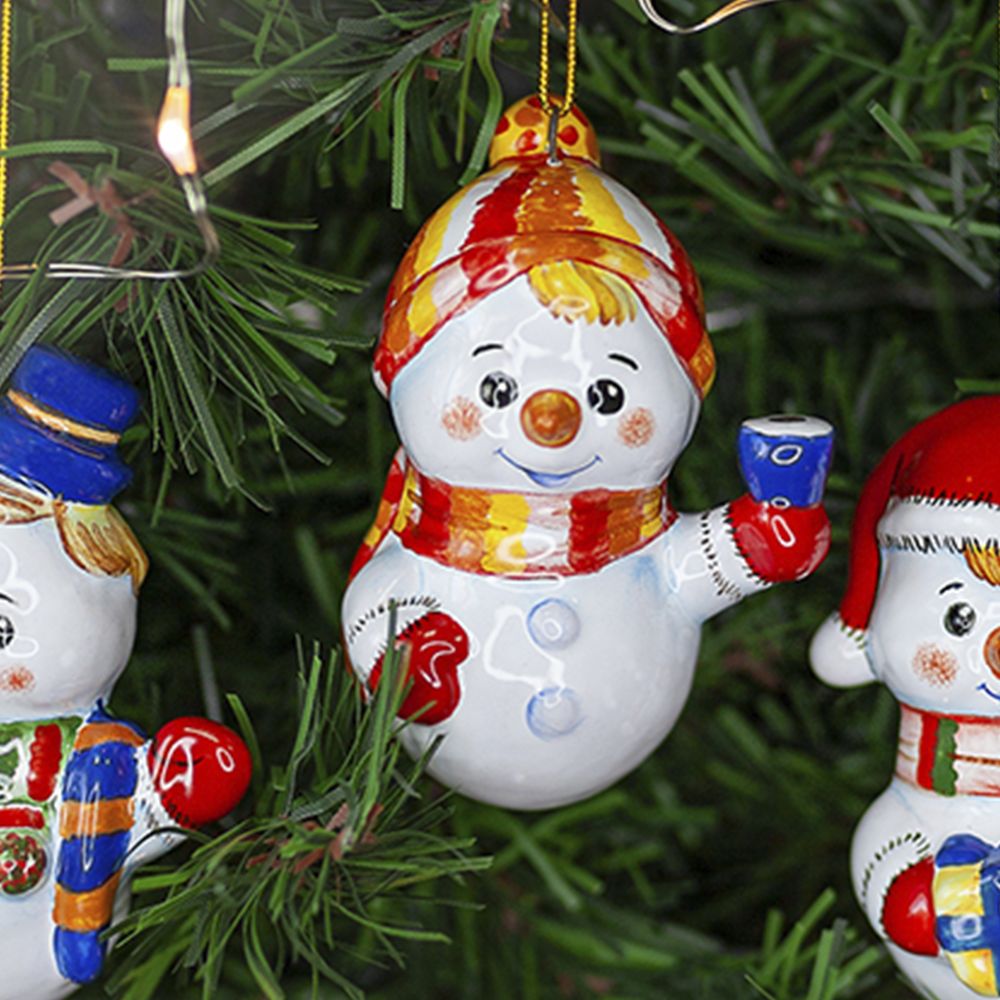 Ёлочная игрушка Cнеговик с колокольчиком (из набора «Три снеговика»)