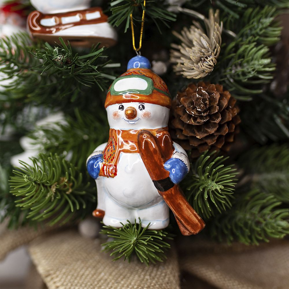 Фигурка “”””Снеговик-лыжник”” изготовлена в технике майолика и украшена ручной росписью. Художником искусно переданы эмоции маленького спортсмена – он чемпион. Яркая шапочка снеговика украшена цветным узором и помпоном, защитная маска, теплый узорчатый шарф и варежки – снеговик готов к спортивным рекордам. Такая фигурка станет чудесным украшением для новогодней елки, милым подарком для всех любителей ручной работы и оригинальных новогодних украшений.”””