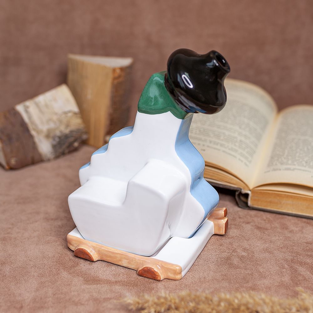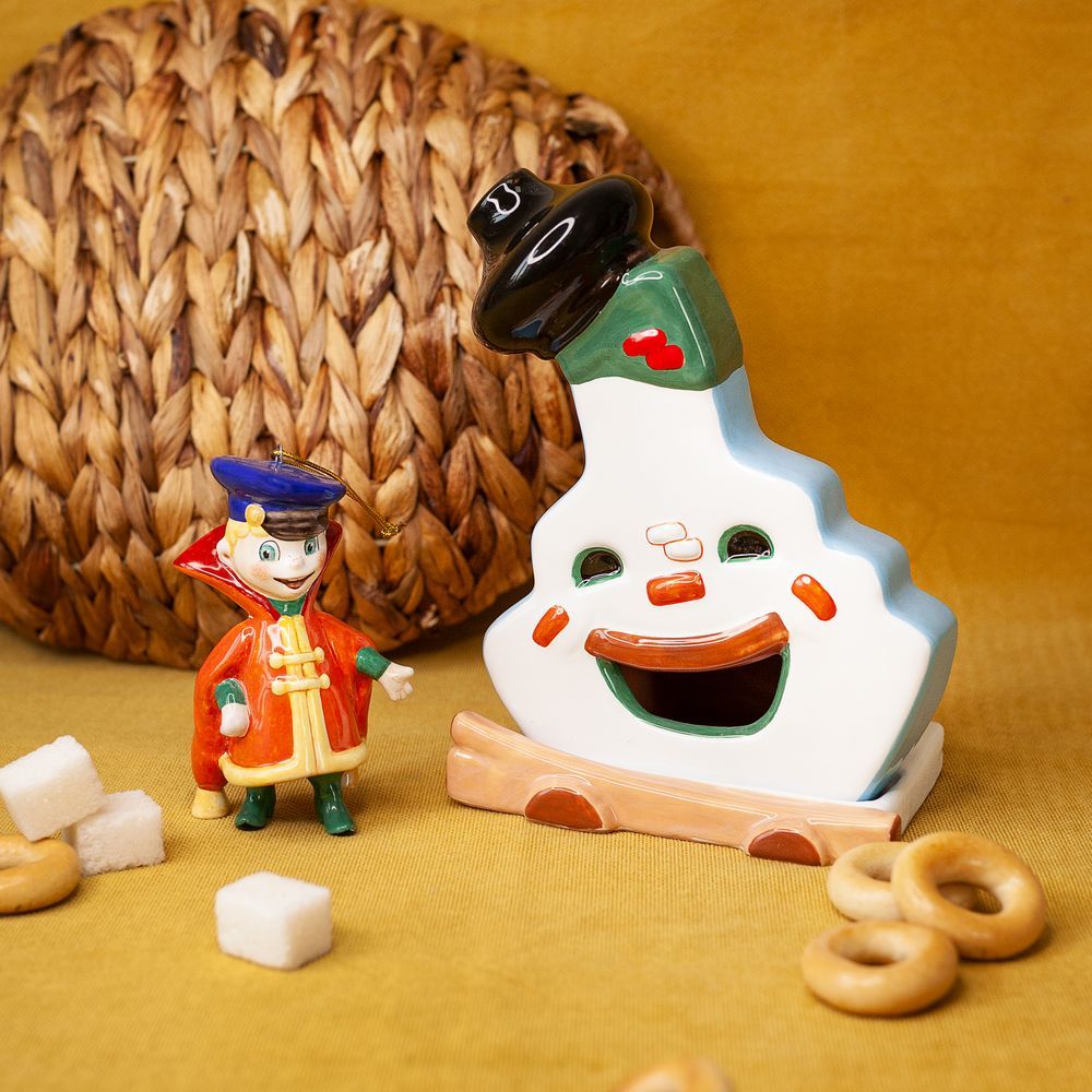 Второстепенные персонажи не всегда забываются, это нам доказывает печка из мультика “Вовка в Тридевятом царстве”. Повстречавшаяся в лесу пожилая печка была не против испечь пироги для Вовки, но замесить тесто и поставить на огонь он должен был их самостоятельно. Закинув все кучей в нее, получились только угольки, а печка посмотрев на это, игриво сказала “Сам испек, сам и кушай”. Она сделана в виде подсвечника и будет греть вас холодными вечерами. Печка-подсвечник станет хорошим подарком всем поклонникам творчества Союзмультфильм, коллекционерам, на день рождение и Новый год в стиле майолика .