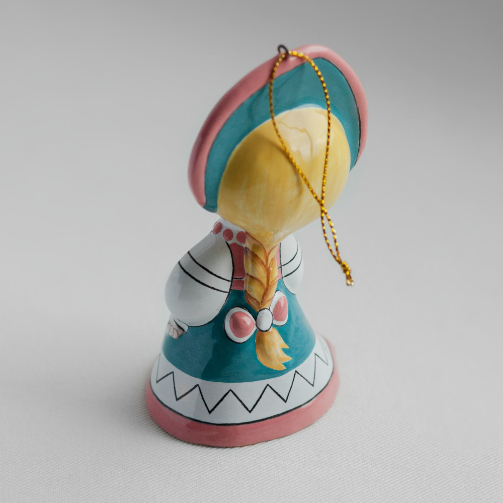 Фигурка выполнена в технике майолика в виде колокольчика, с любовью и вниманием к каждой детали. Ручная роспись придает ей неповторимый характер, а форма колокольчика добавляет нотку игривости и волшебства. Василиса, олицетворяющая мудрость и доброту, готова рассказать вам свою историю и преподать урок.