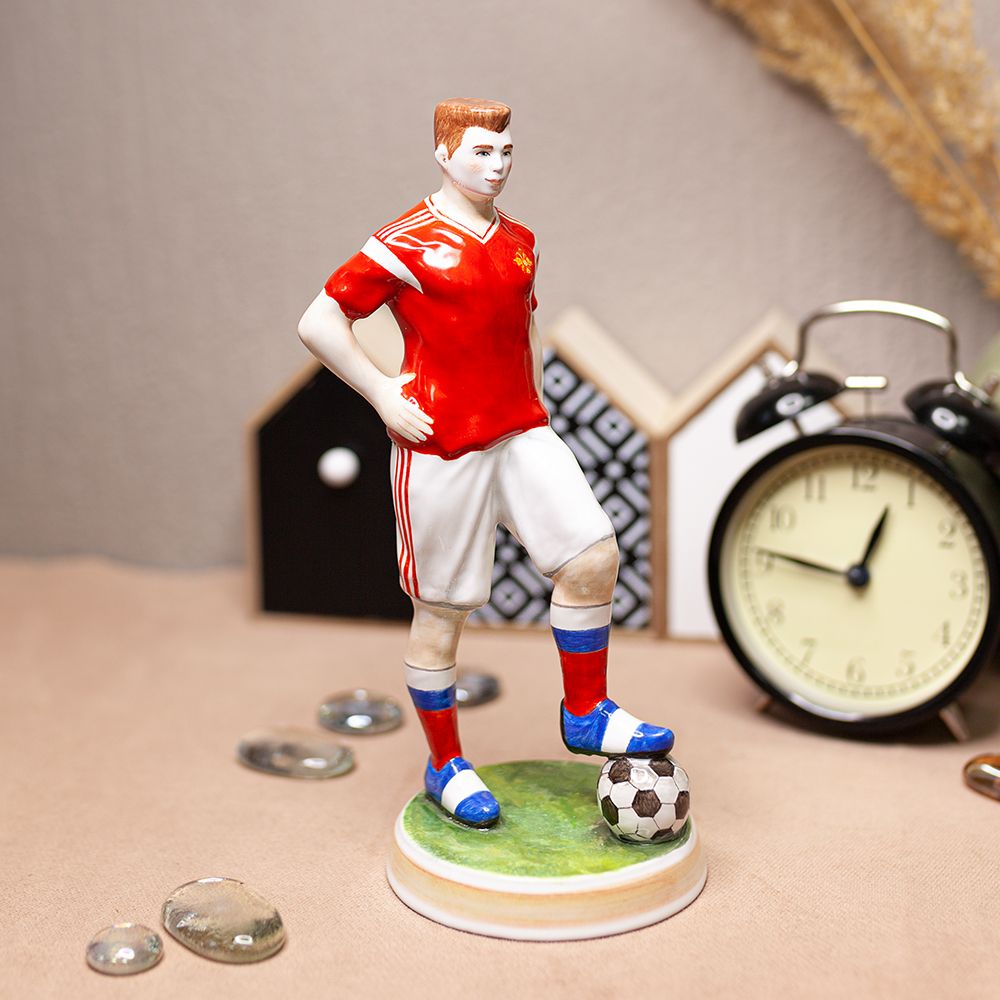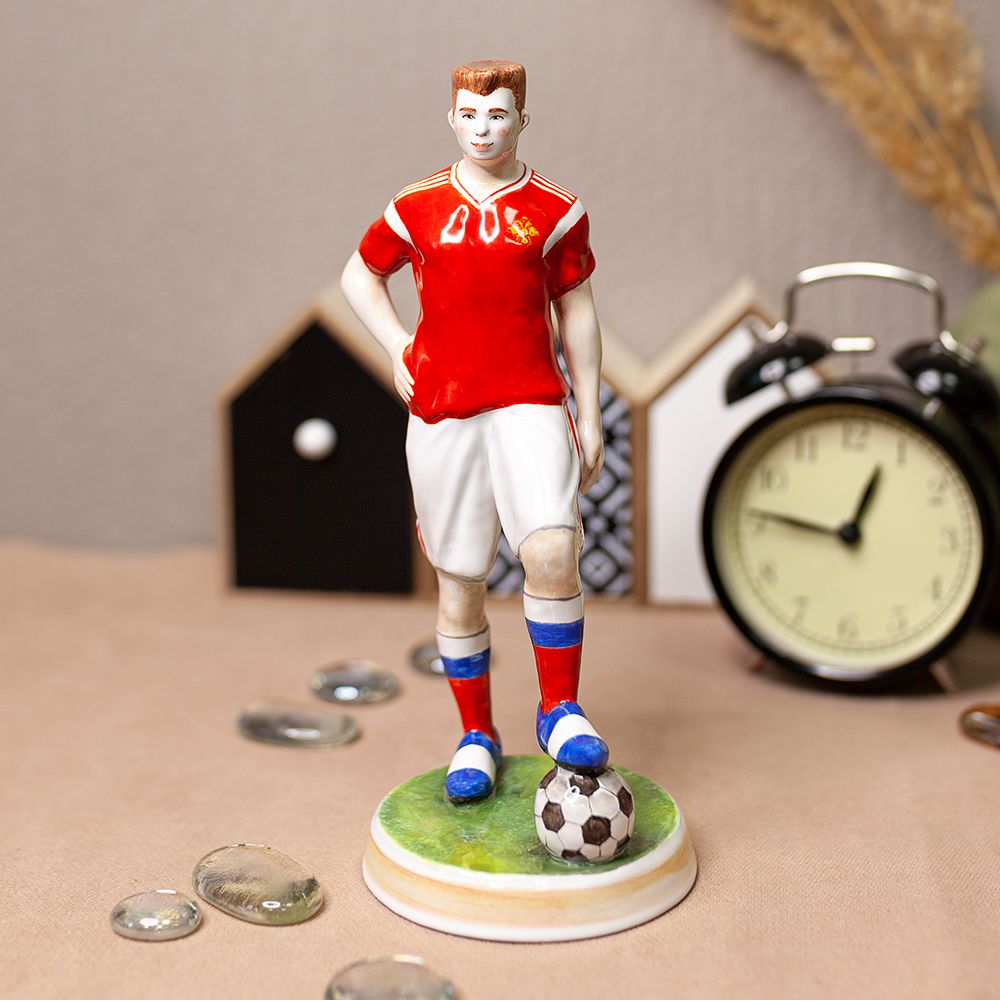 Это изделие ручной работы представляет фигурку футболиста, вышедшего с мячом на поле. Молодой игрок готов к борьбе. Композиция будет выразительным акцентом в интерьере, станет эксклюзивным подарком всем любителям этой популярной во всем мире игры, сувениром для конкурсов и профессиональных праздников. Возможно нанесение логотипа или индивидуальный заказ.