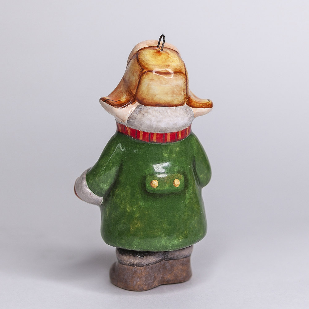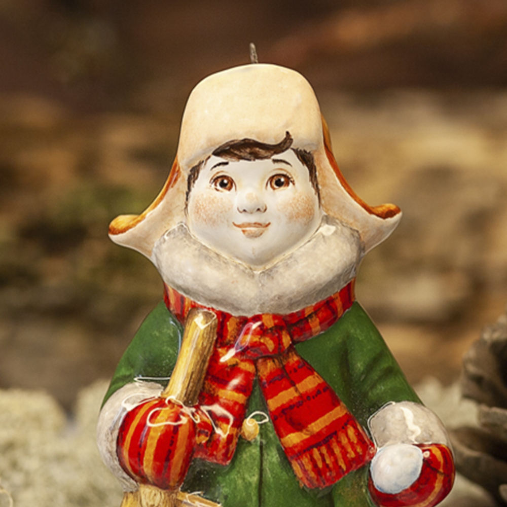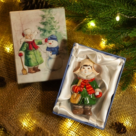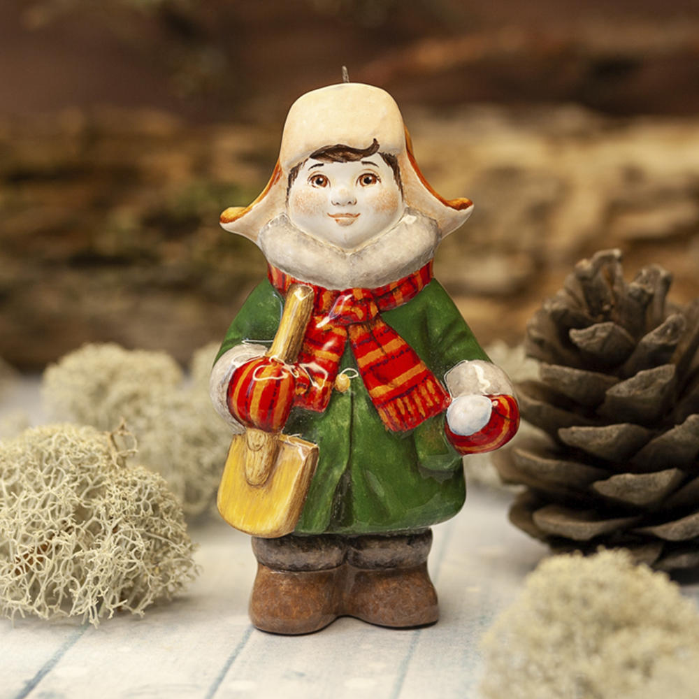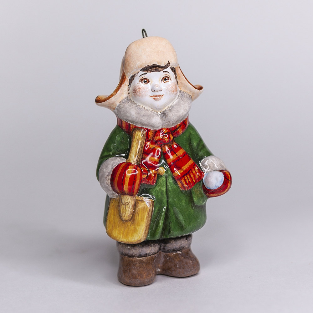 Эксклюзивное изделие ручной работы входит в коллекцию «Зима пришла» и представляет собой фигурку мальчика, собравшегося на прогулку, в шапке-ушанке, валенках, с ярким шарфом, повязанным под воротник пальто, с деревянной лопаткой в руках. Малыш готов хоть строить крепость, хоть лепить снеговика. Игрушка смотрится ярко и непосредственно, будет чудесным украшением новогодней елочки, милым подарком и замечательно подойдёт для оформления интерьеров, порадует коллекционеров.
