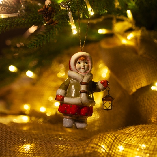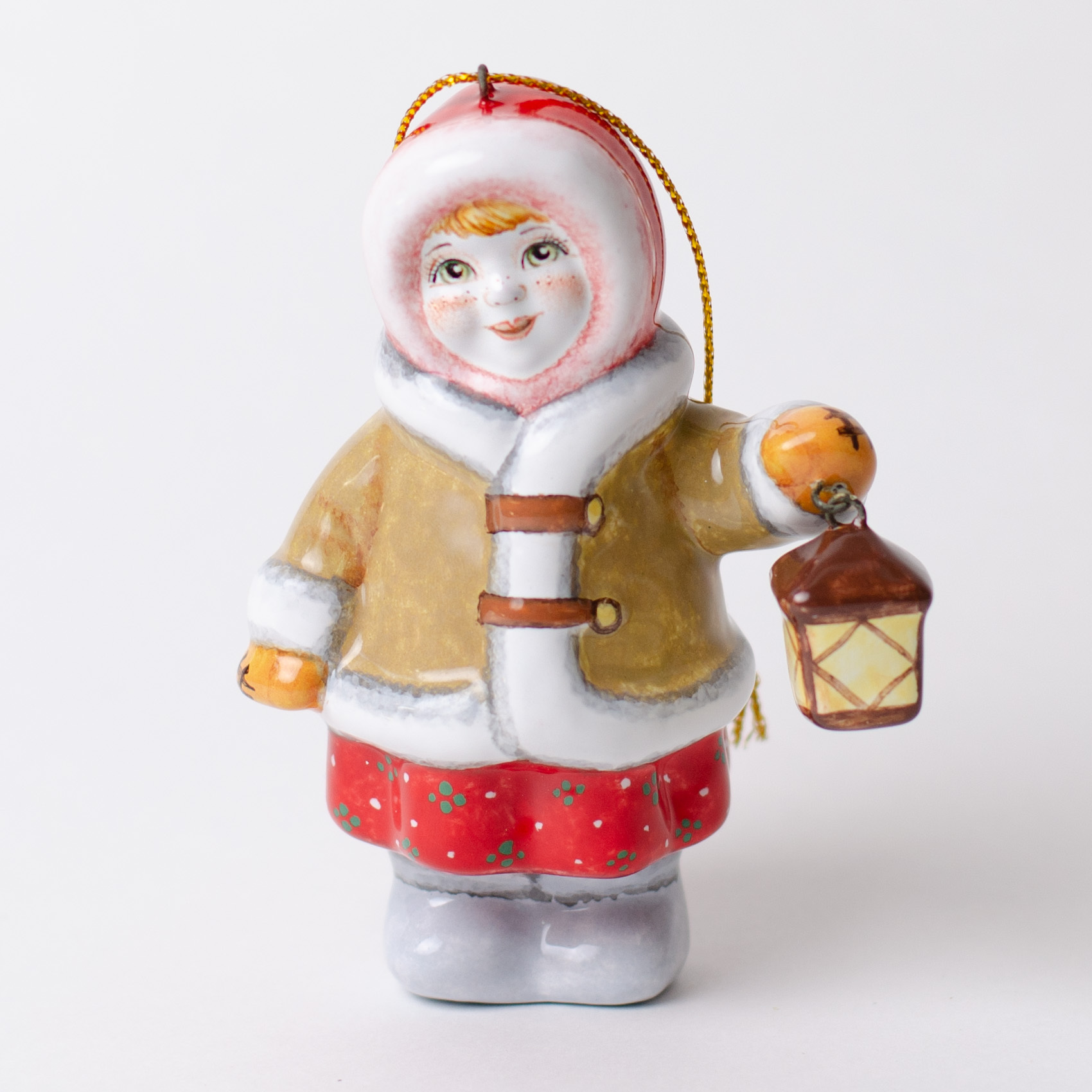Эксклюзивное изделие ручной работы входит в коллекцию «Зима пришла» и представляет собой фигурку девочки, вышедшей на зимнюю улицу, в коротком, но теплом полушубке, валенках, меховой шапке, с фонарем в руке. Видно, что малышке не страшны ни темнота, ни мороз. Широко распахнутые глаза полны любопытства. Игрушка смотрится ярко и непосредственно, будет чудесным украшением новогодней елочки, милым подарком и замечательно подойдёт для оформления интерьеров, порадует коллекционеров.