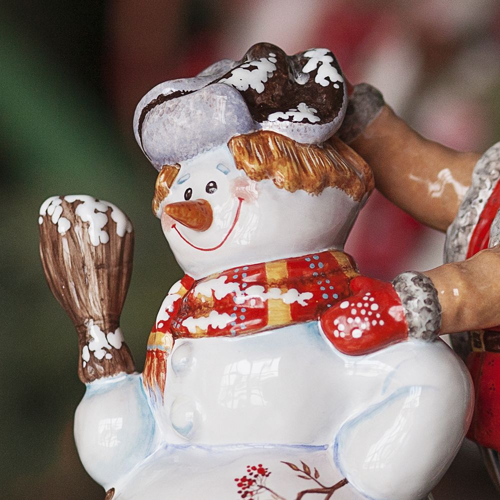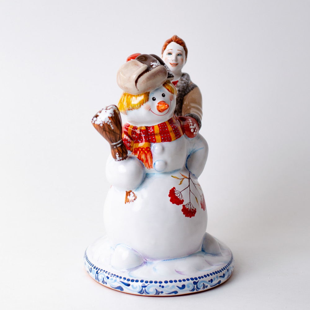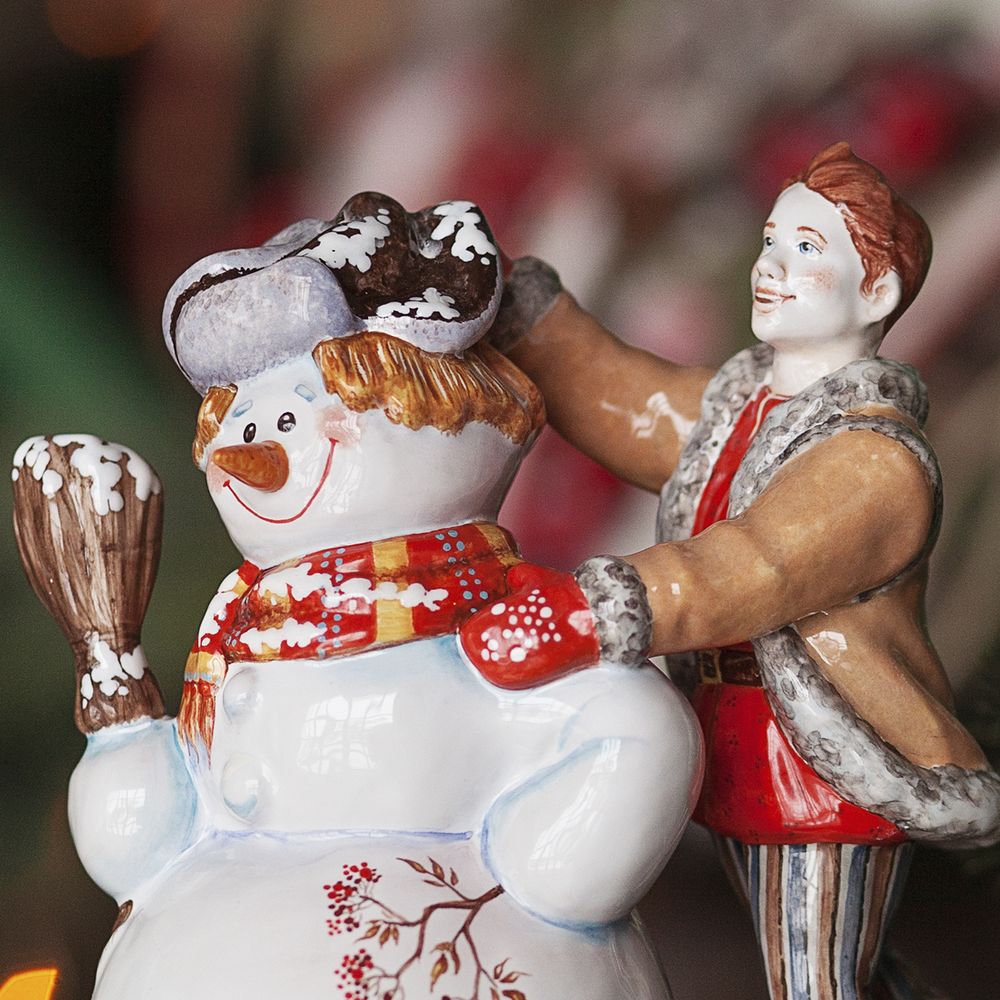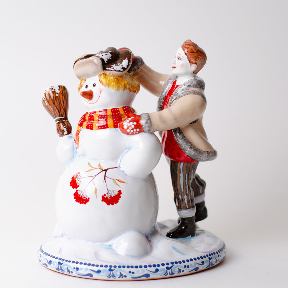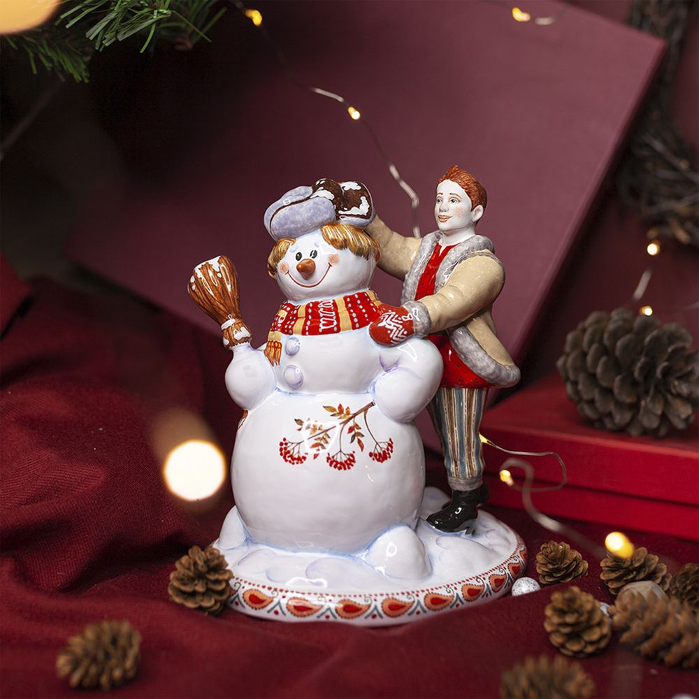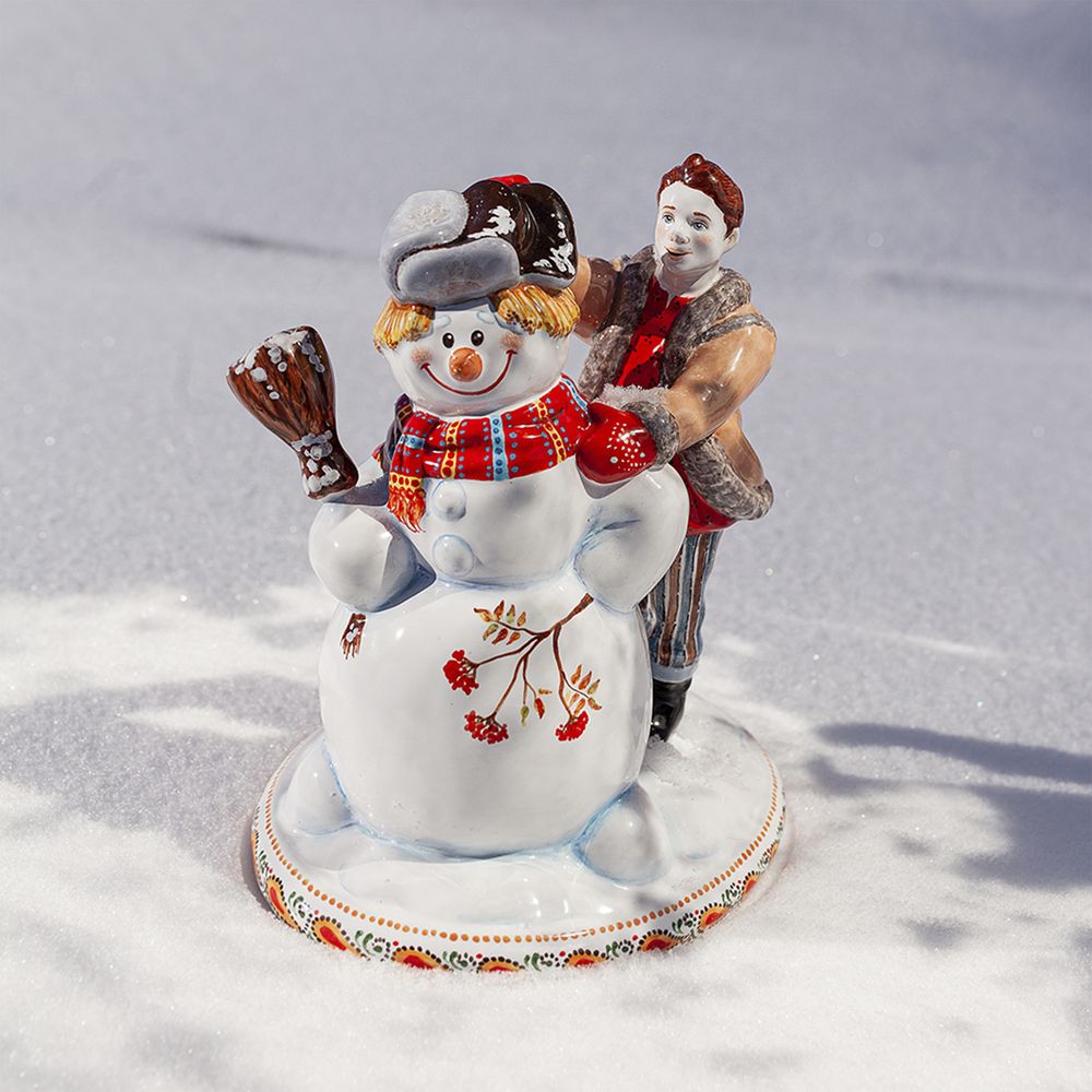 Фигурка “Мальчик и снеговик” выполнена в технике майолика, украшена ручной художественной росписью и входит в коллекцию “Зимние игры”. В сюжете представлен мальчик, который с восторгом лепит снеговика. Каждая деталь выполнена художником с особой тщательностью, что неизменно покорит сердце любого коллекционера изделий из керамики. Эта композиция станет эксклюзивным подарком к Новому году и Рождеству, украсит собой интерьер и создаст в доме радостную, праздничную атмосферу.