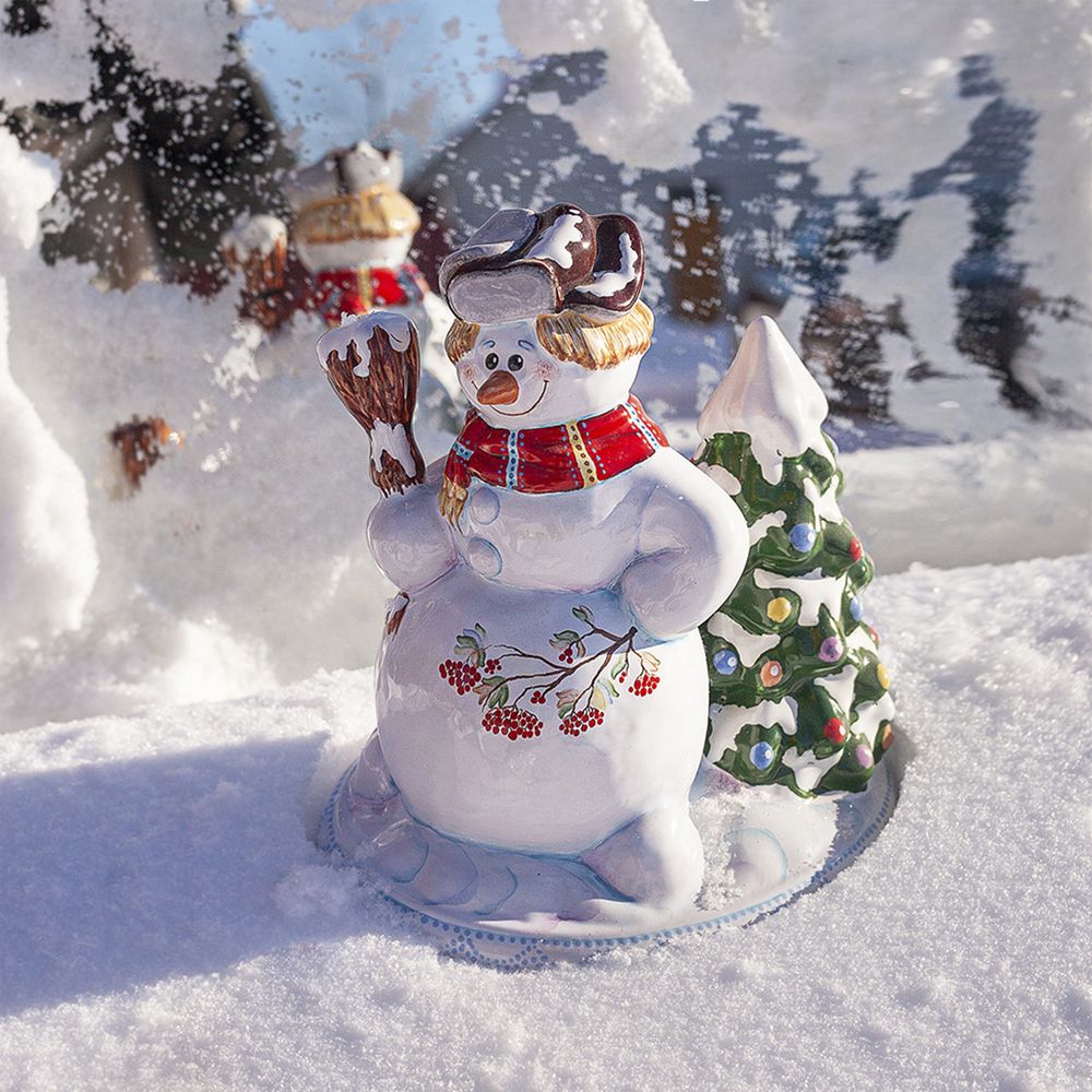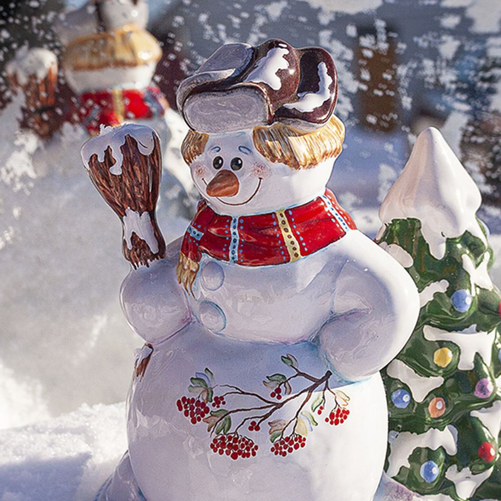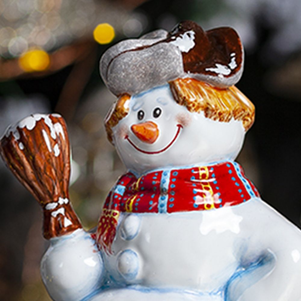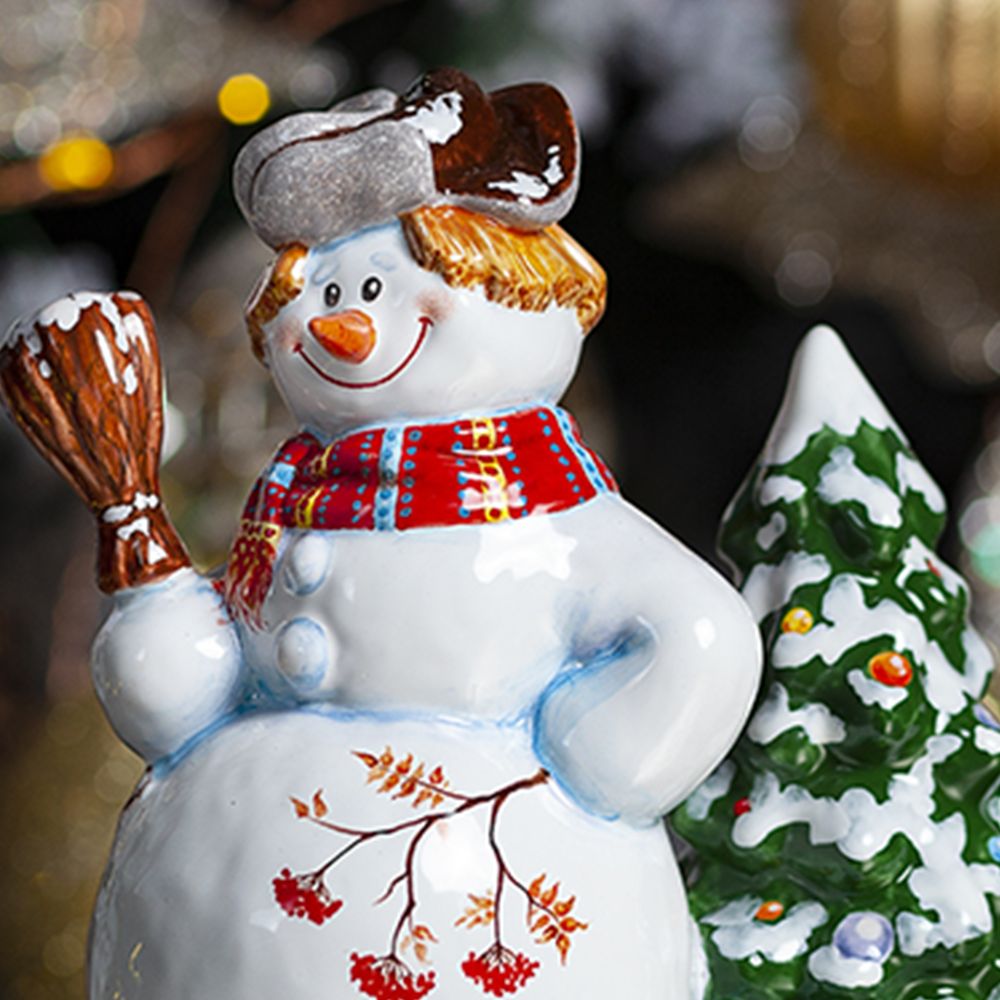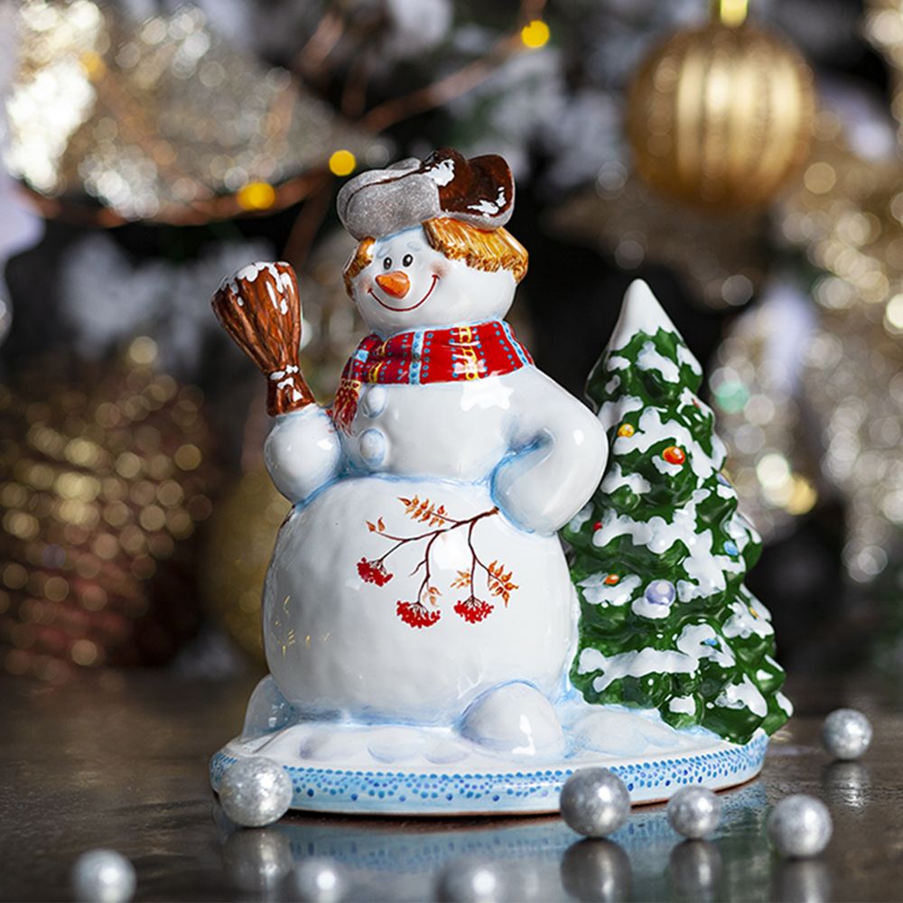 Фигурка “Снеговик с елкой” выполнена в технике майолика, украшена ручной художественной росписью и входит в коллекцию “Зимние игры”. Изделия из майолики всегда привлекают внимание своей красотой и оригинальностью. Большой и добрый снеговик несет радость и позитивный настрой. Его яркий наряд и отличное настроение, никого не оставит равнодушным. Фигурка “Снеговик с елкой” прекрасно дополнит вашу коллекцию керамических изделий и станет ярким акцентом в интерьере вашего дома в зимние праздники. Прекрасный подарок для друзей и близких на новогодние праздники и оригинальное приобретение для любителей ручной работы и оригинальных декоративных элементов.