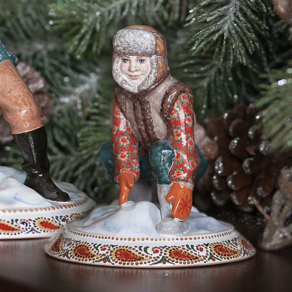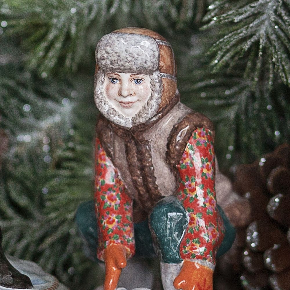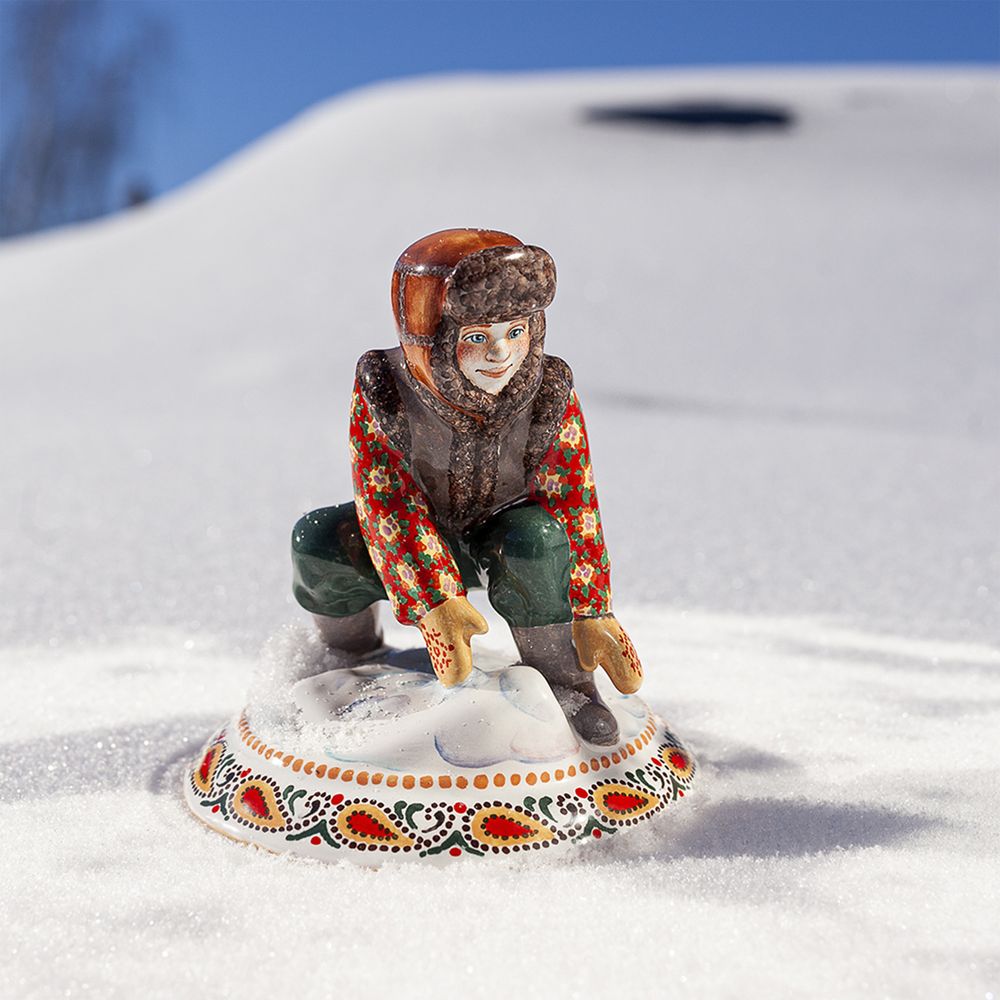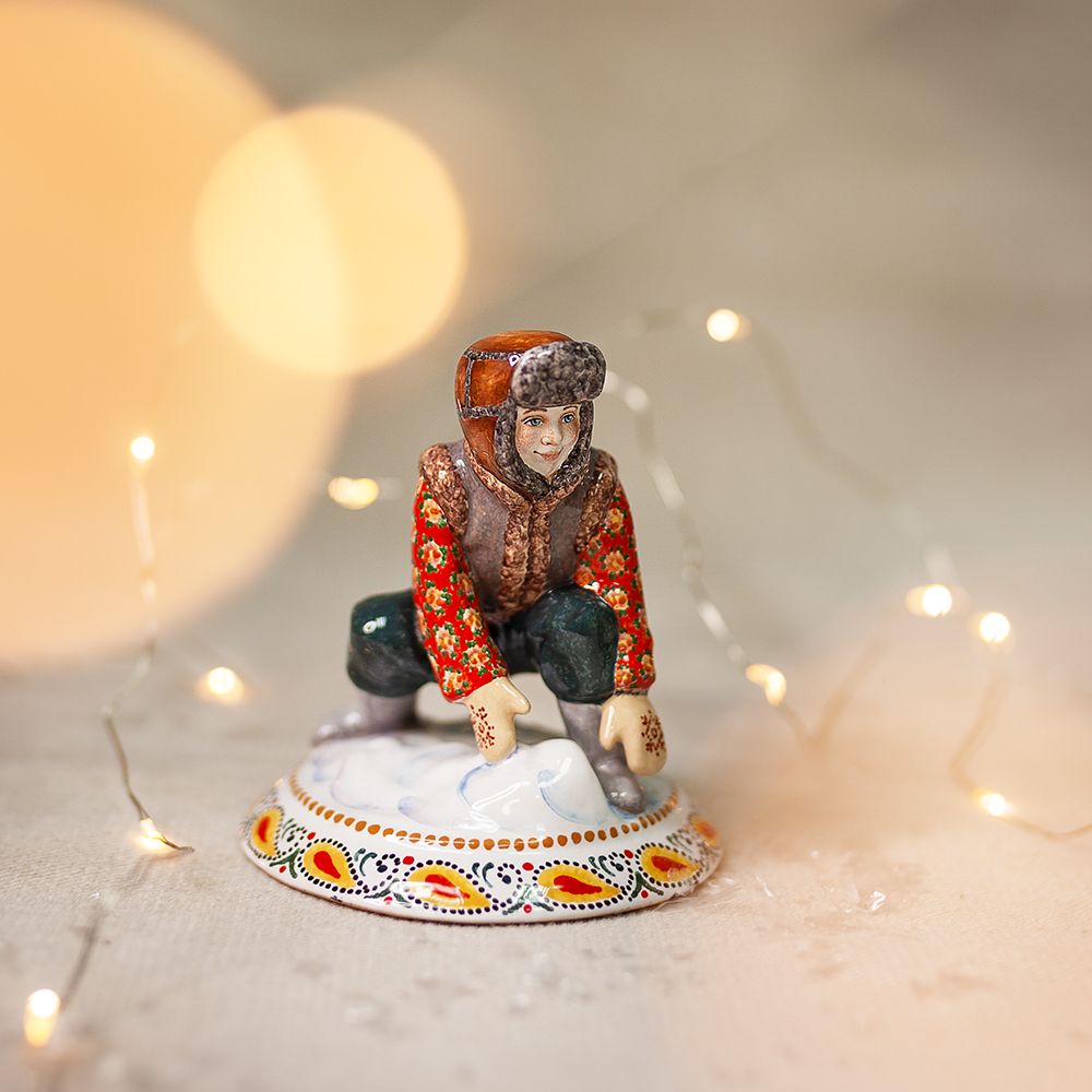 Эксклюзивное изделие ручной работы входит в коллекцию “Зимние игры” и представляет собой целый сюжет. Не зря коллекция называется зимние игры. Зима, снег, радость и веселье: мальчуган готов вступить в снежный бой. Эта великолепная композиция композиция будет изумительно смотреться в интерьере, станет запоминающимся подарком к Новому году и Рождеству, принесёт радость, создаст настроение и позитивный настрой, порадует коллекционеров.