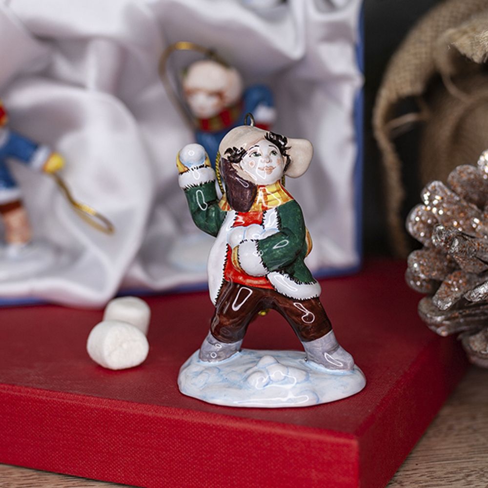 Эксклюзивное изделие ручной работы входит в коллекцию “Зимние забавы” и представляет собой целый сюжет. Не зря коллекция называется зимние забавы. Зима в радость: мороз, блестит снег, летит снежок – веселье и азарт. Эта замечательная елочная игрушка будет великолепно смотреться на новогодней ели, станет запоминающимся подарком к Новому году и Рождеству, принесёт радость, создаст настроение и позитивный настрой, порадует коллекционеров.