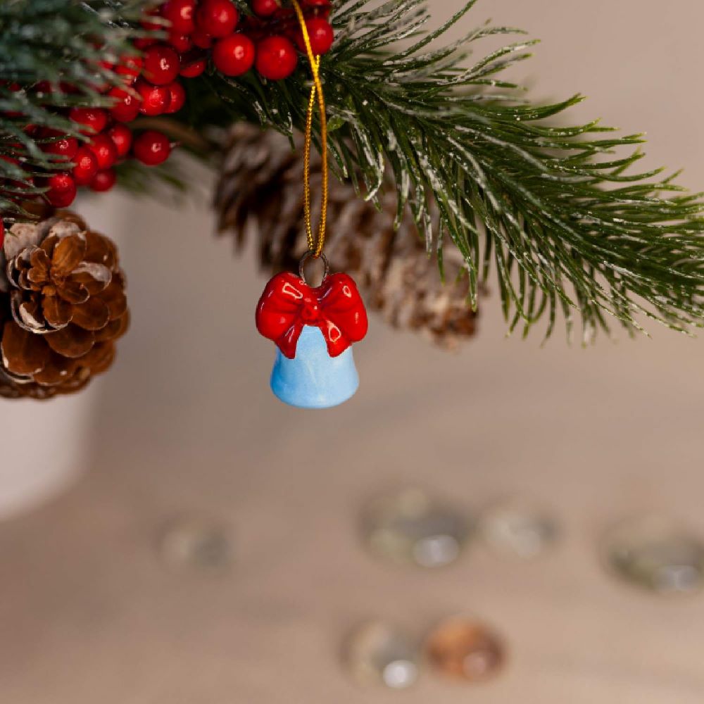 Мини-подвес “”Колокольчик”” изготовлен в технике майолика, украшен ручной художественной росписью и входит в коллекцию украшений “”Для маленькой ёлочки””. Колокольчик – символ открытости, чистоты помыслов и любви. Наши яркие елочные колокольчики с нарядными бантами украсят маленькую новогоднюю елочку и будут милым подарком для близких. Соберите всю коллекцию мини-украшений, чтобы малышка-елочка была самой красивой.”