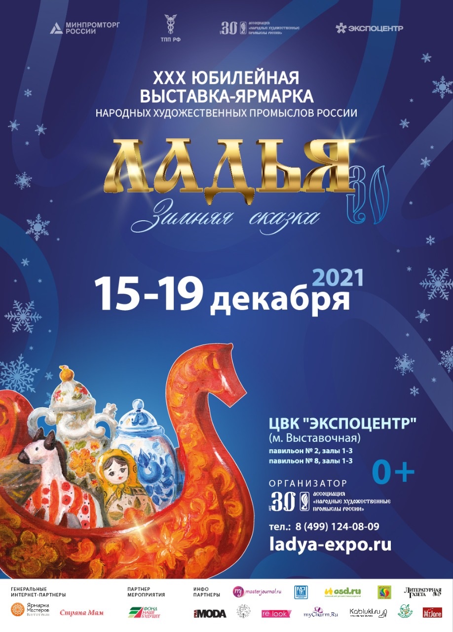 С 15 по 19 декабря 2021 года в ЦВК «Экспоцентр» пройдет крупнейшая в стране выставка-ярмарка народных художественных промыслов «ЛАДЬЯ. Зимняя сказка-2021», которая состоится при соблюдении всех необходимых мер безопасности по предупреждению распространения новой