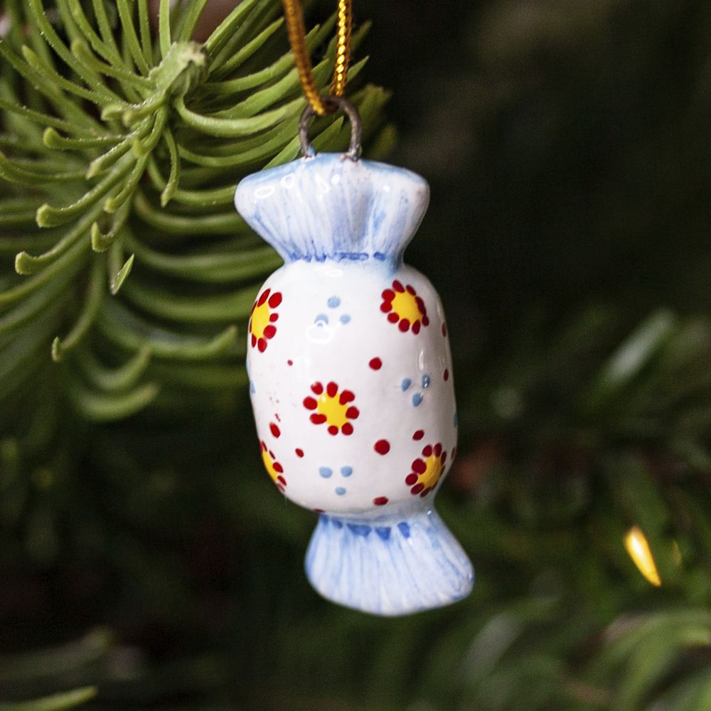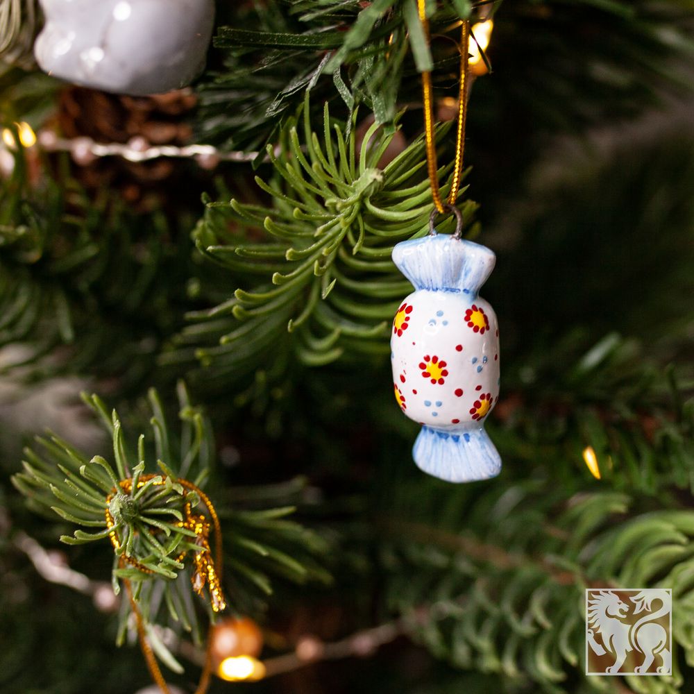 Мини-подвес “Конфетка” изготовлен в технике майолика, украшен ручной художественной росписью и входит в коллекцию “Для маленькой ёлочки”. Во все времена, конфеты являлись традиционным украшением рождественской ёлки, и такой подарок – дань старинной традиции. Игрушка прекрасно будет смотреться на праздничной ёлке, украсит собой новогодние гирлянды и любые другие композиции. Это запоминающийся сувенир как на Новый год и Рождество, так и для ценителей и коллекционеров изделий ручной работы.