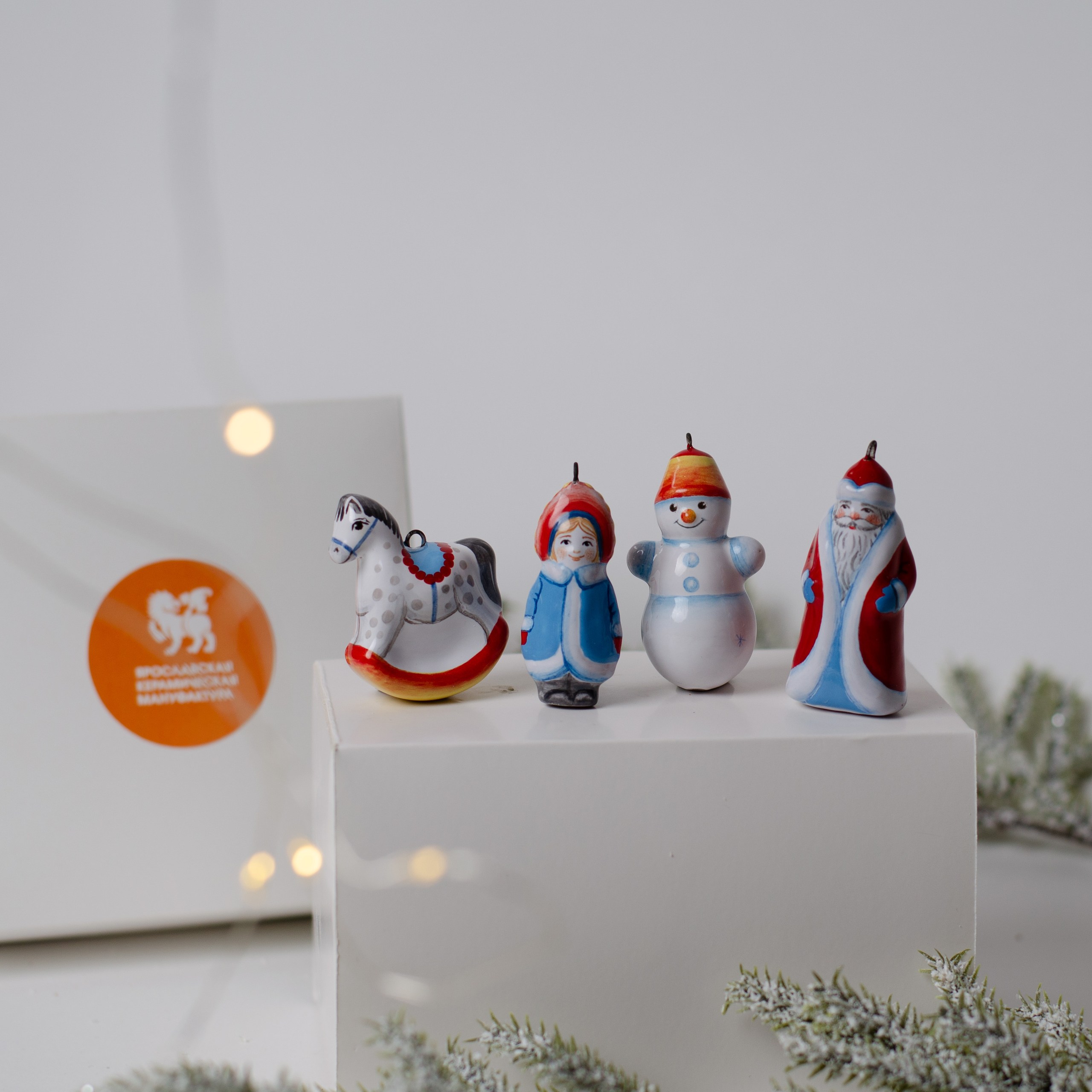 В комплекте елочных украшений №5 вы найдете четыре фигурки: Дед Мороз, Снегурочка, Снеговик и Лошадка. Эти миниатюрные новогодние игрушки из серии “Игрушки для маленькой елочки” наполнят ваш дом атмосферой уюта и праздничного волшебства.